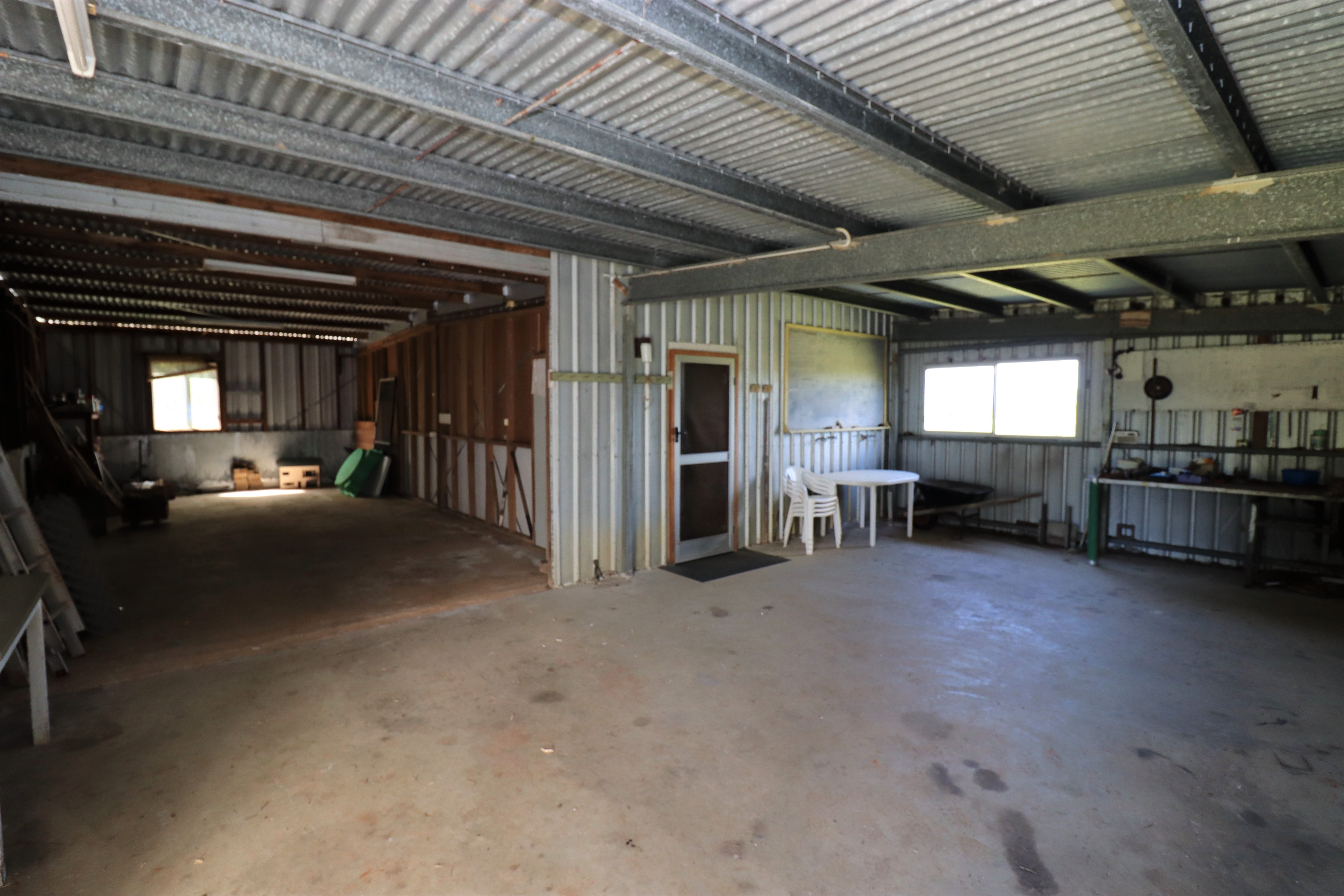 - Powered 14 x 9m shed with 2 x roller doors. 1 x side access door, 15amp power.