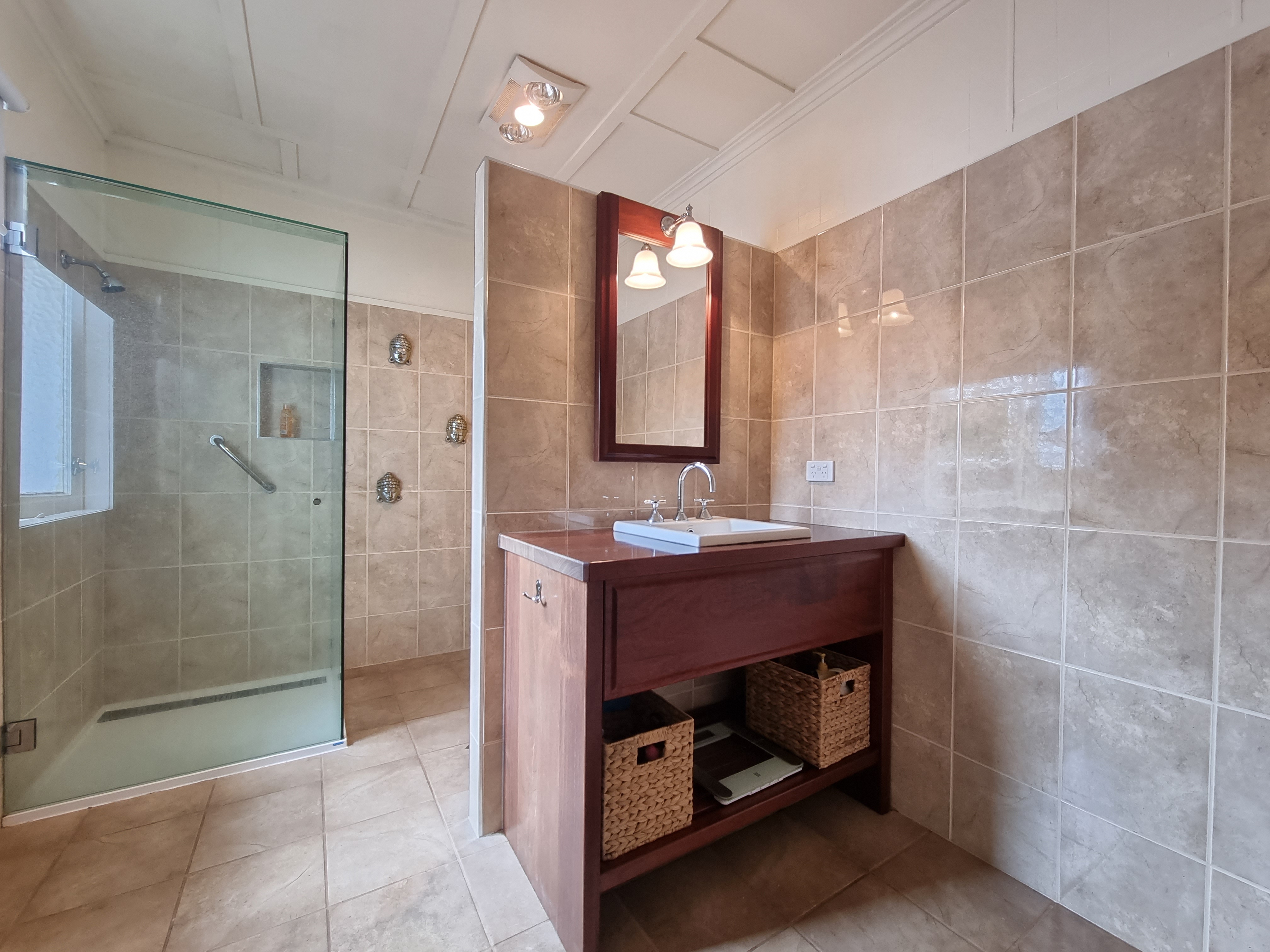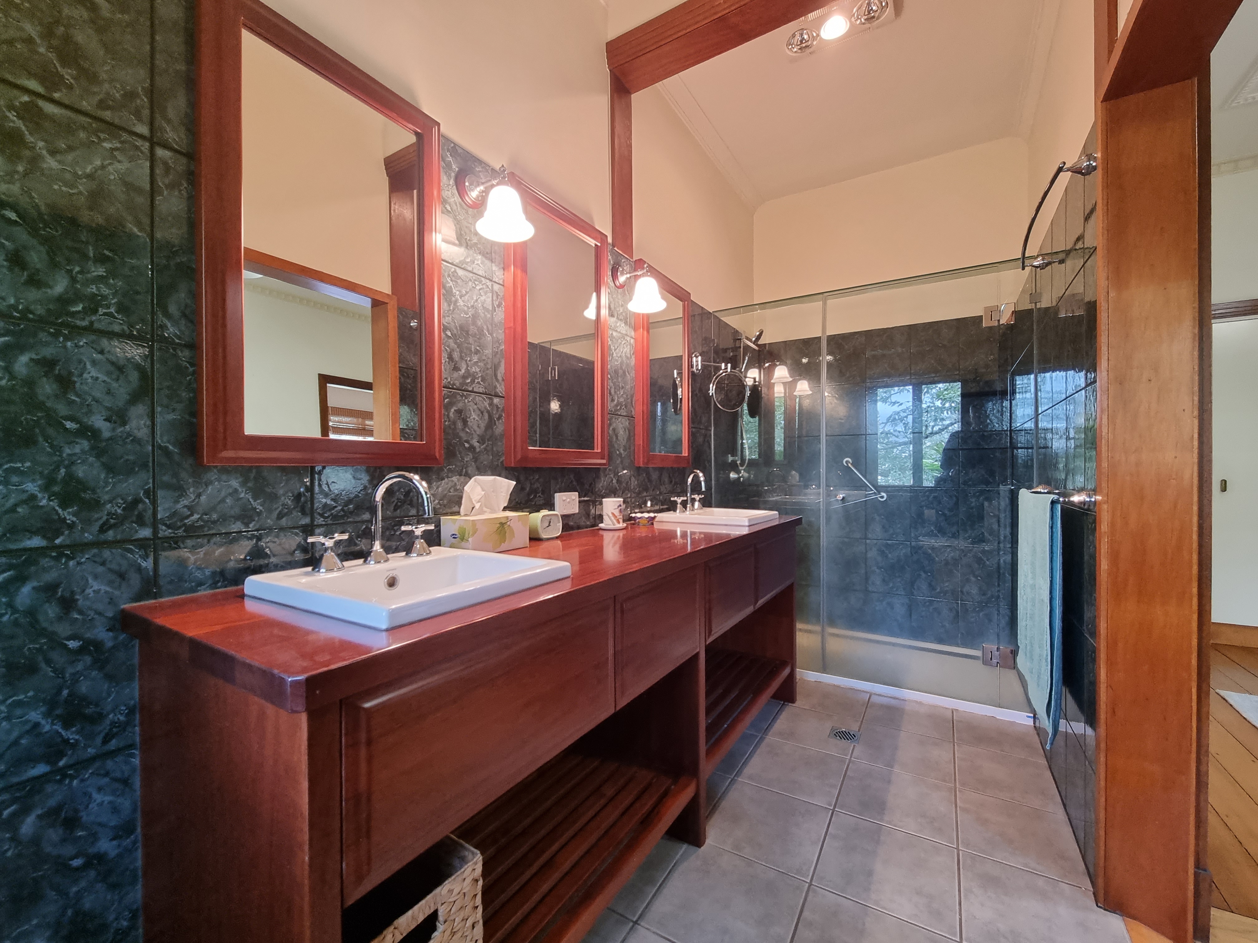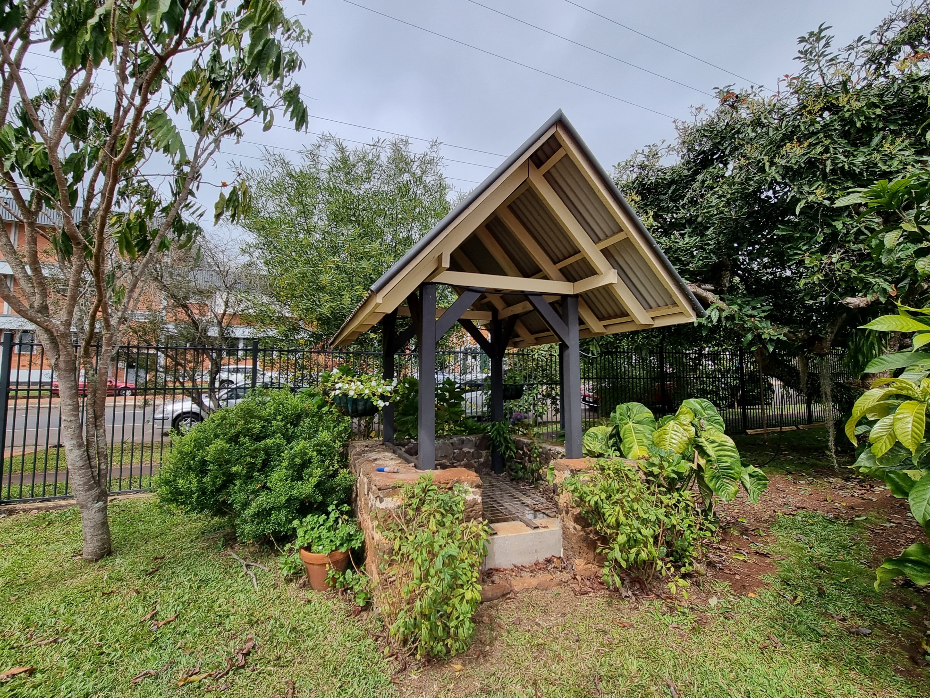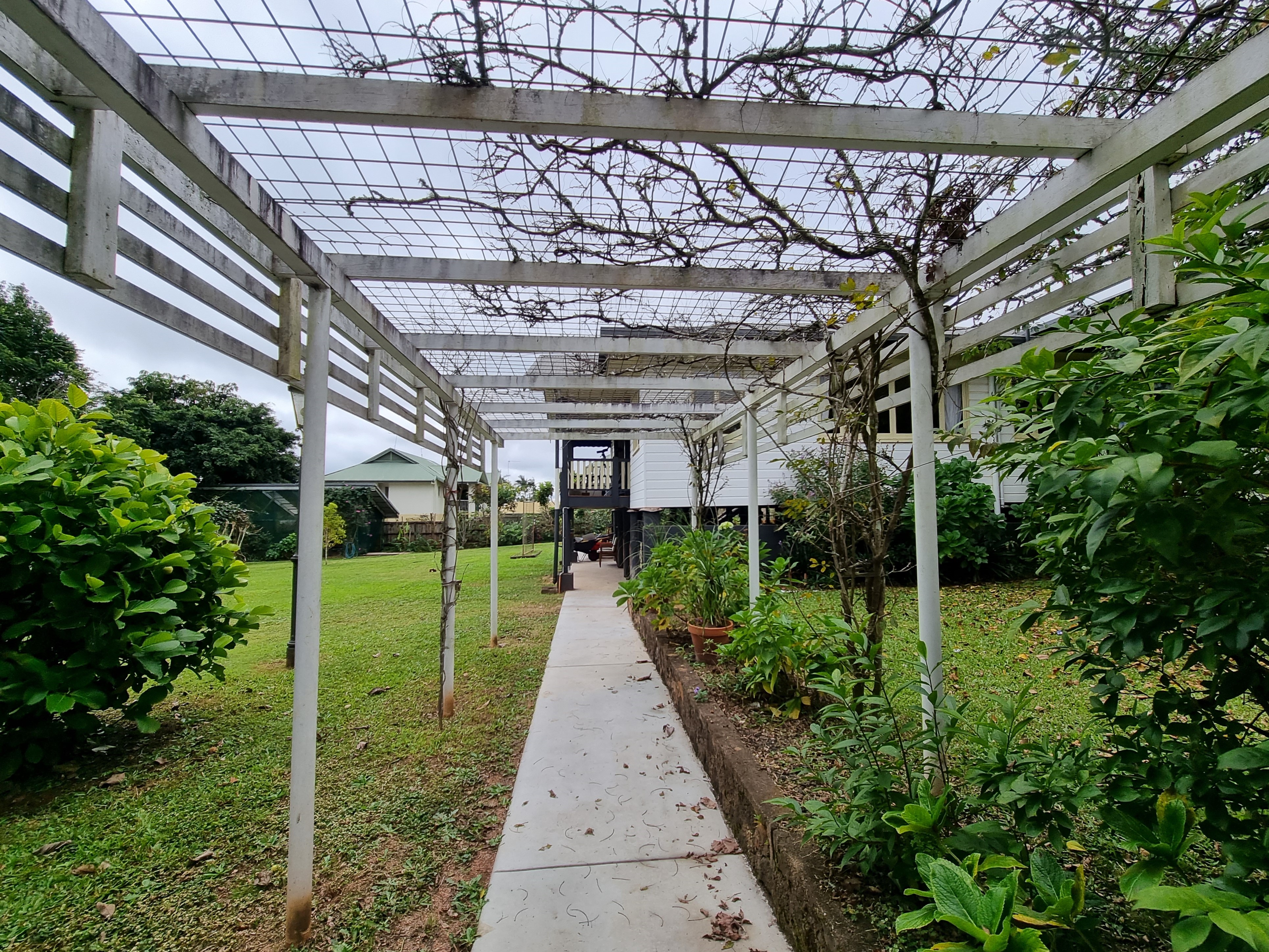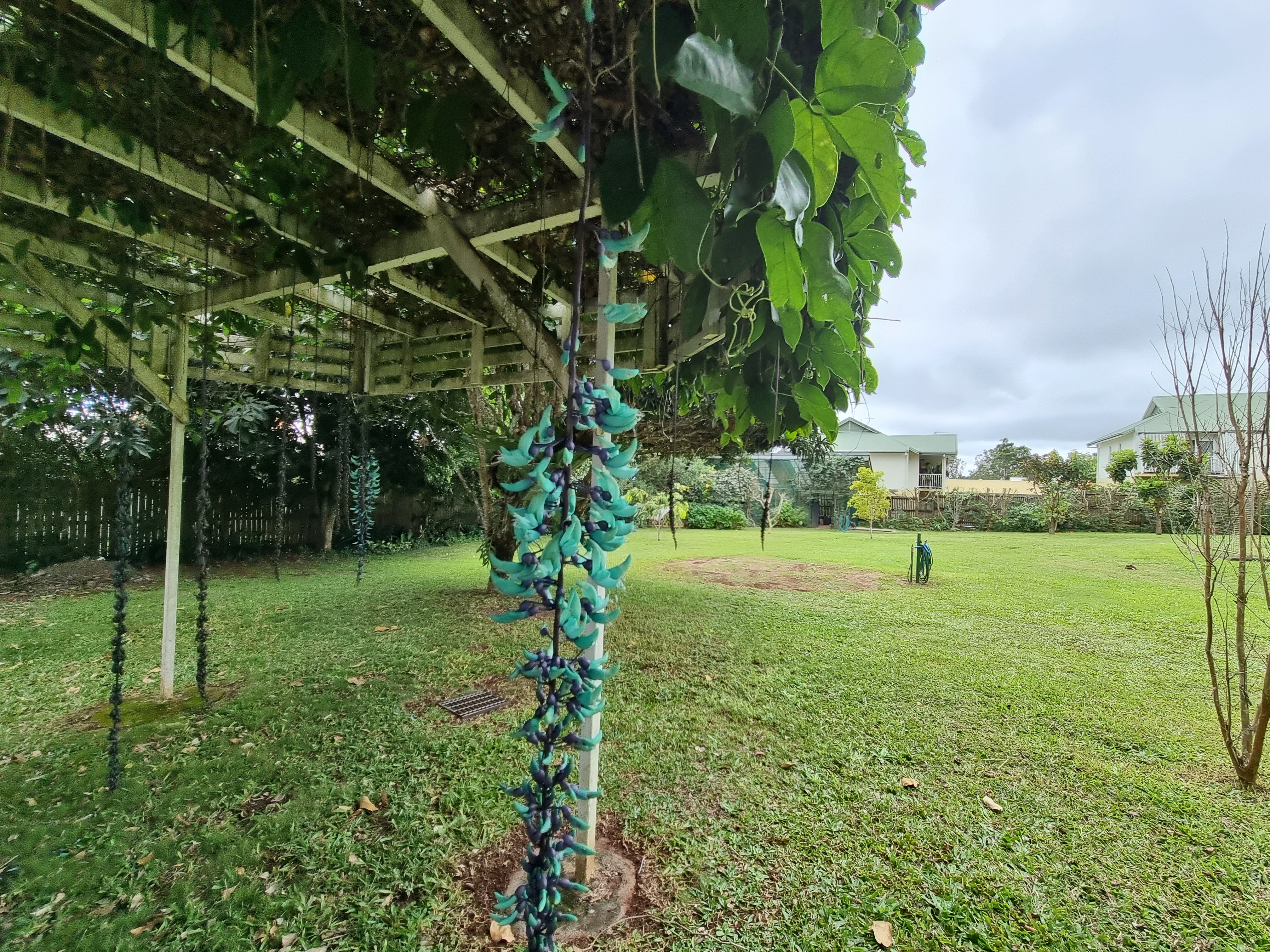 Out in the fully fenced garden there are exotic species such as a Panama Gold, Tangle Wattle, Flame of the Forest and Avocado trees, and Jade Vine and Wisteria cloaking the gazebos providing pleasant surrounds year round.