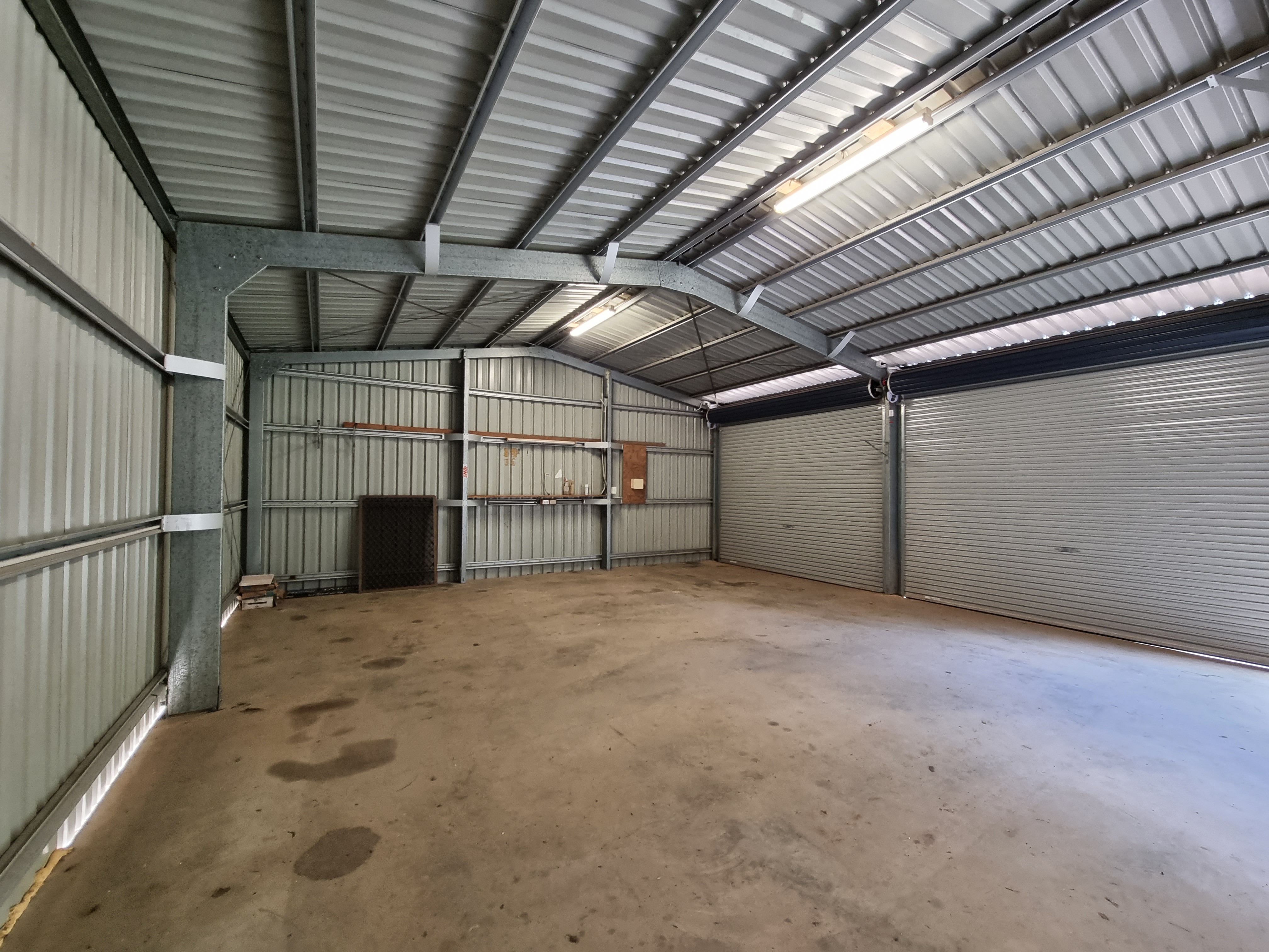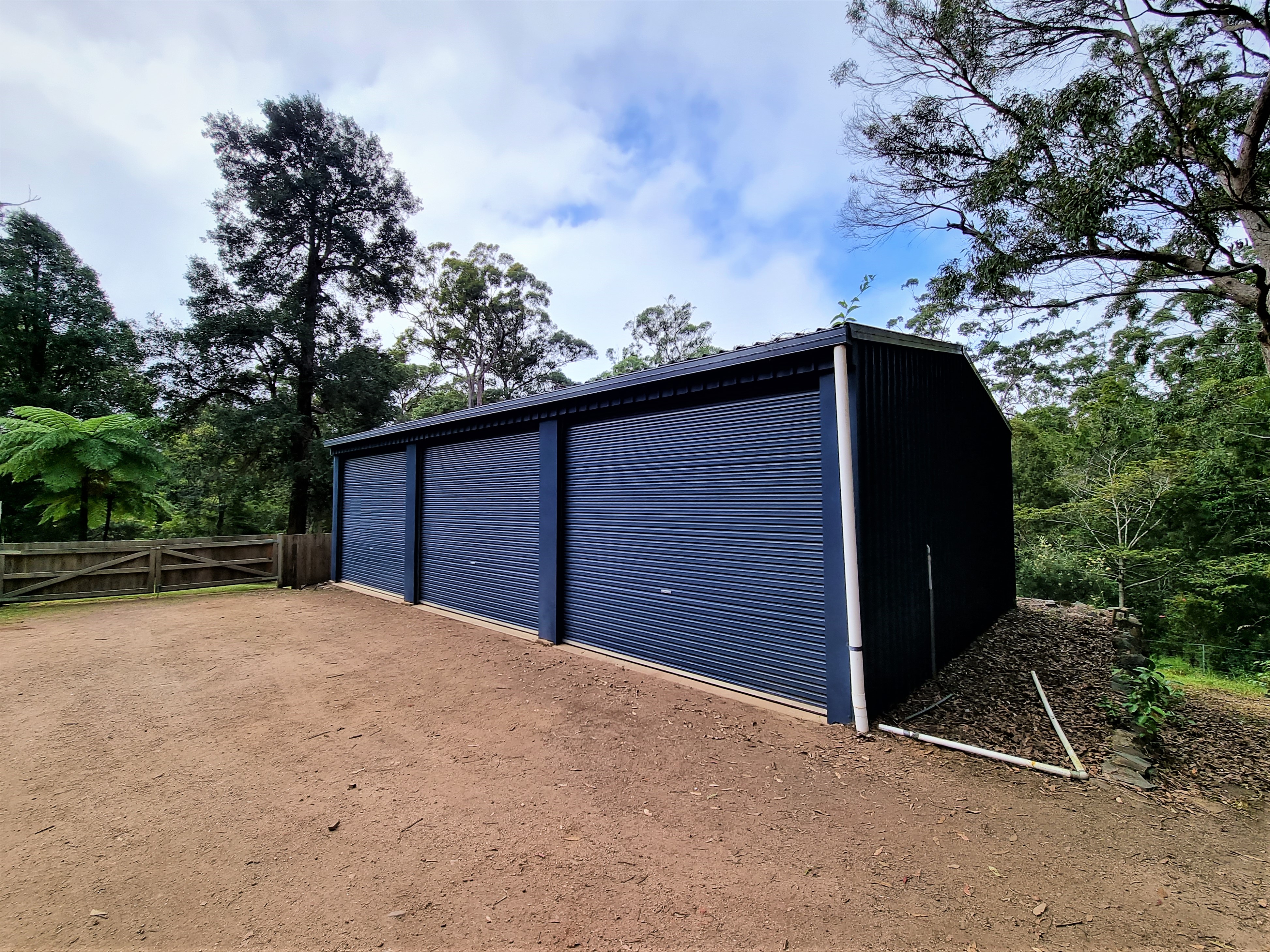 Across the drive the 3 bay 8m x 12m shed with concrete floor and power leaves plenty of room for the vehicles and toys.