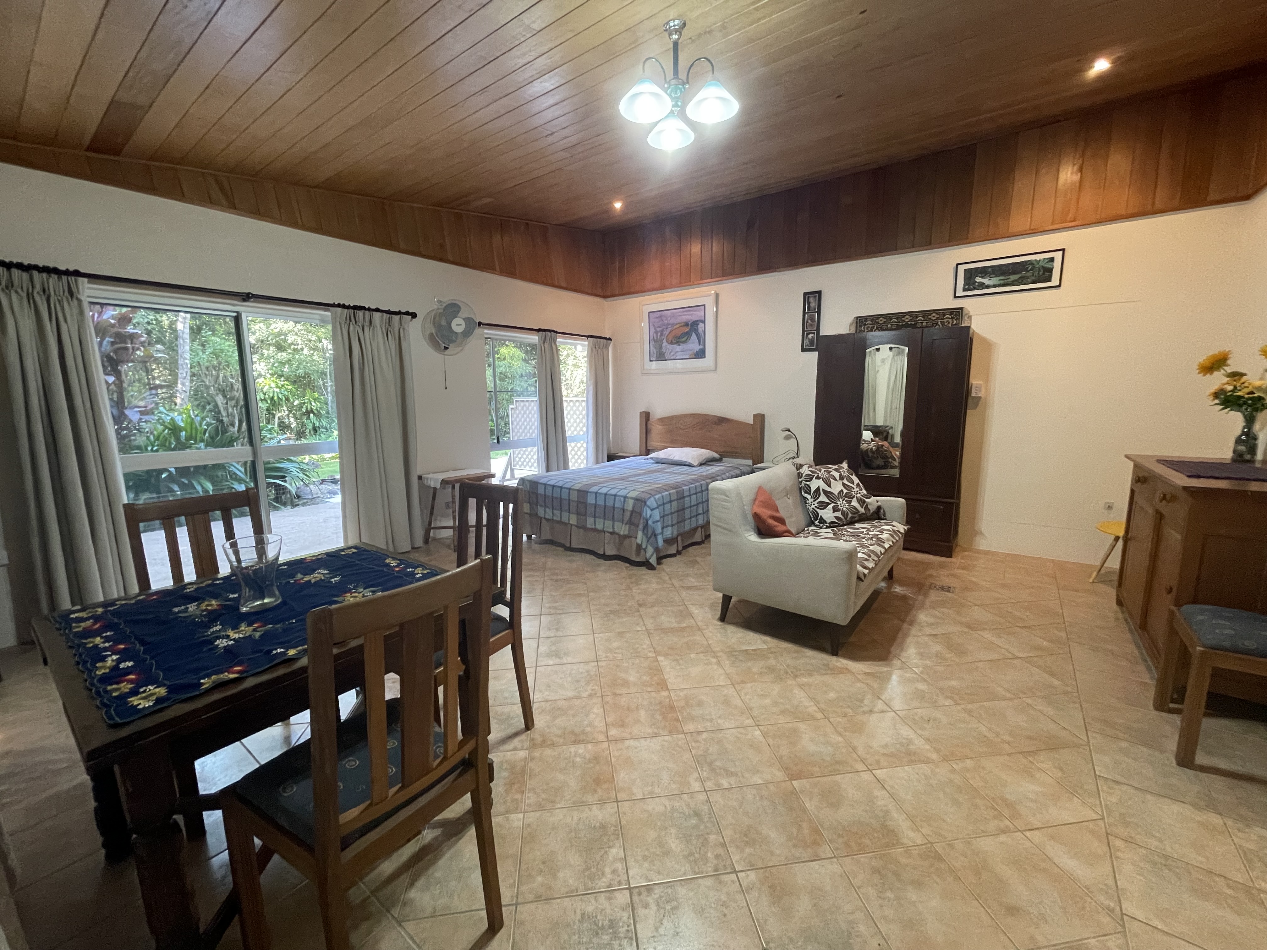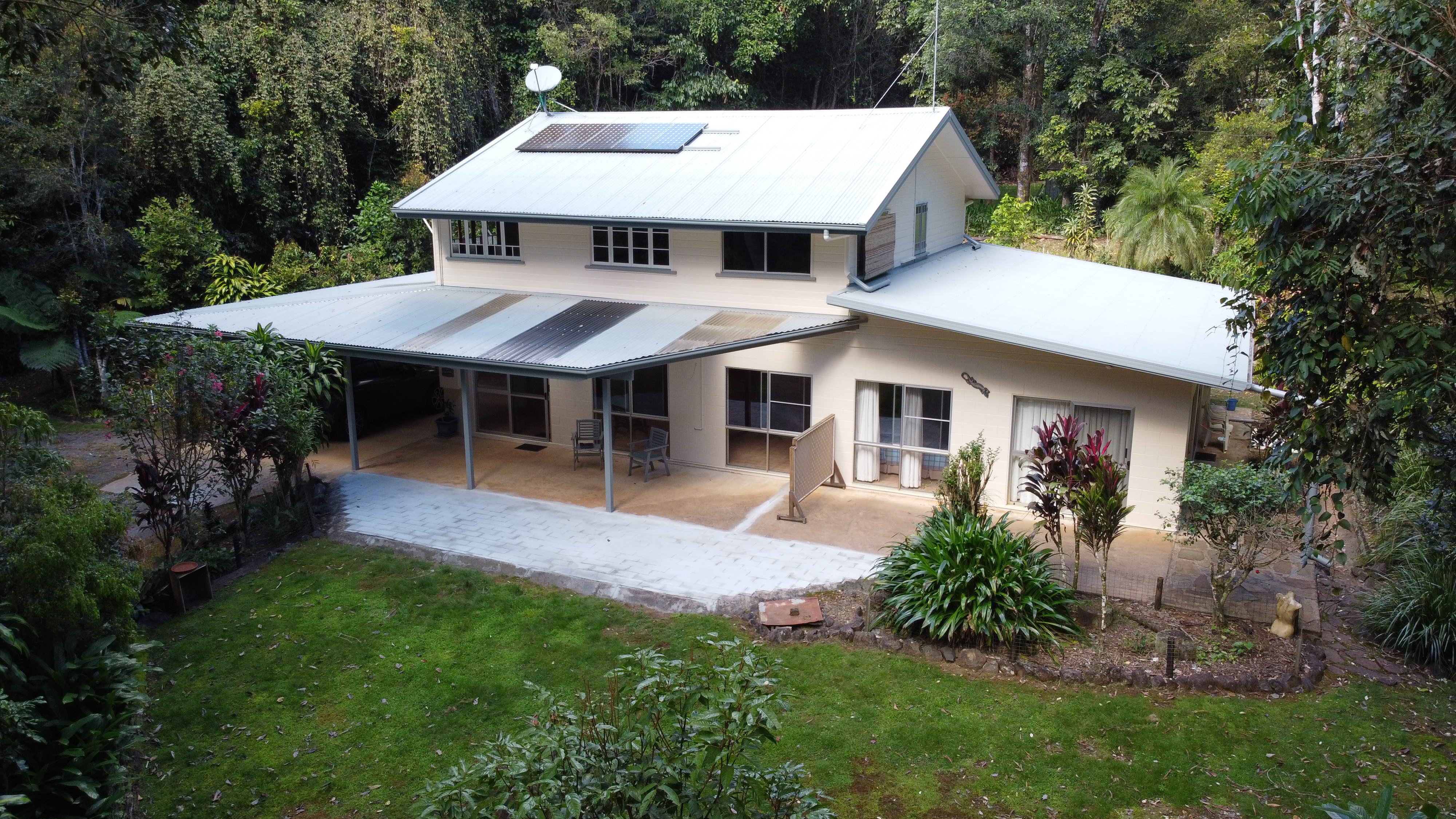 Hidden in the rainforest – this property offers the ultimate lifestyle - peace and privacy. The home is currently set up with a main residence featuring 3 bedrooms, beautiful brand new kitchen with gas cooking and plenty of bench and storage space. The dining, kitchen & lounge area is open plan with a stunning timber in built office. A beautiful timber internal staircase leads to all bedrooms and the main bathroom with an activity room separating the bedrooms. Next door with separate access is a granny flat which features a kitchenette, bathroom and large open plan bedroom/lounge/dining room. Patios run the entire length of the home on the lower level at the front and back with a double bay carport for car accommodation. Access is provided to the back yard which features both a garden shed and a very large 10mx6m Colourbond shed. Bringing the package together the property has established gardens that frame the home with retaining walls and pathways. This property has been rented both the main residence and the granny flat creating a dual income opportunity, the perfect residence for Airbnb or if you have an extended family. This property has been well loved, and is ready for a new owner. Call Exclusive Marketing Agent Kaydee Chatfield 0417 468 941 at First National Atherton today!