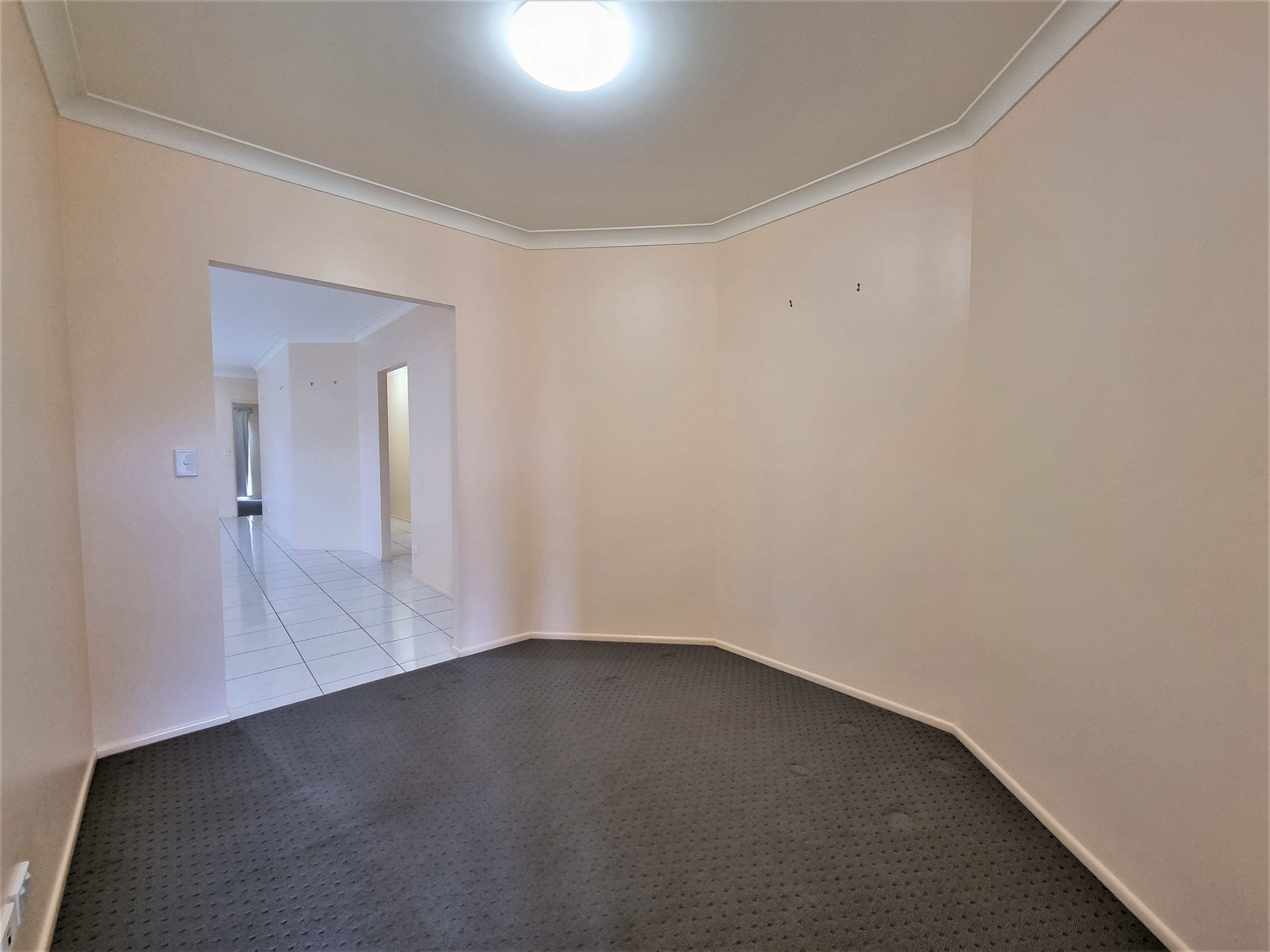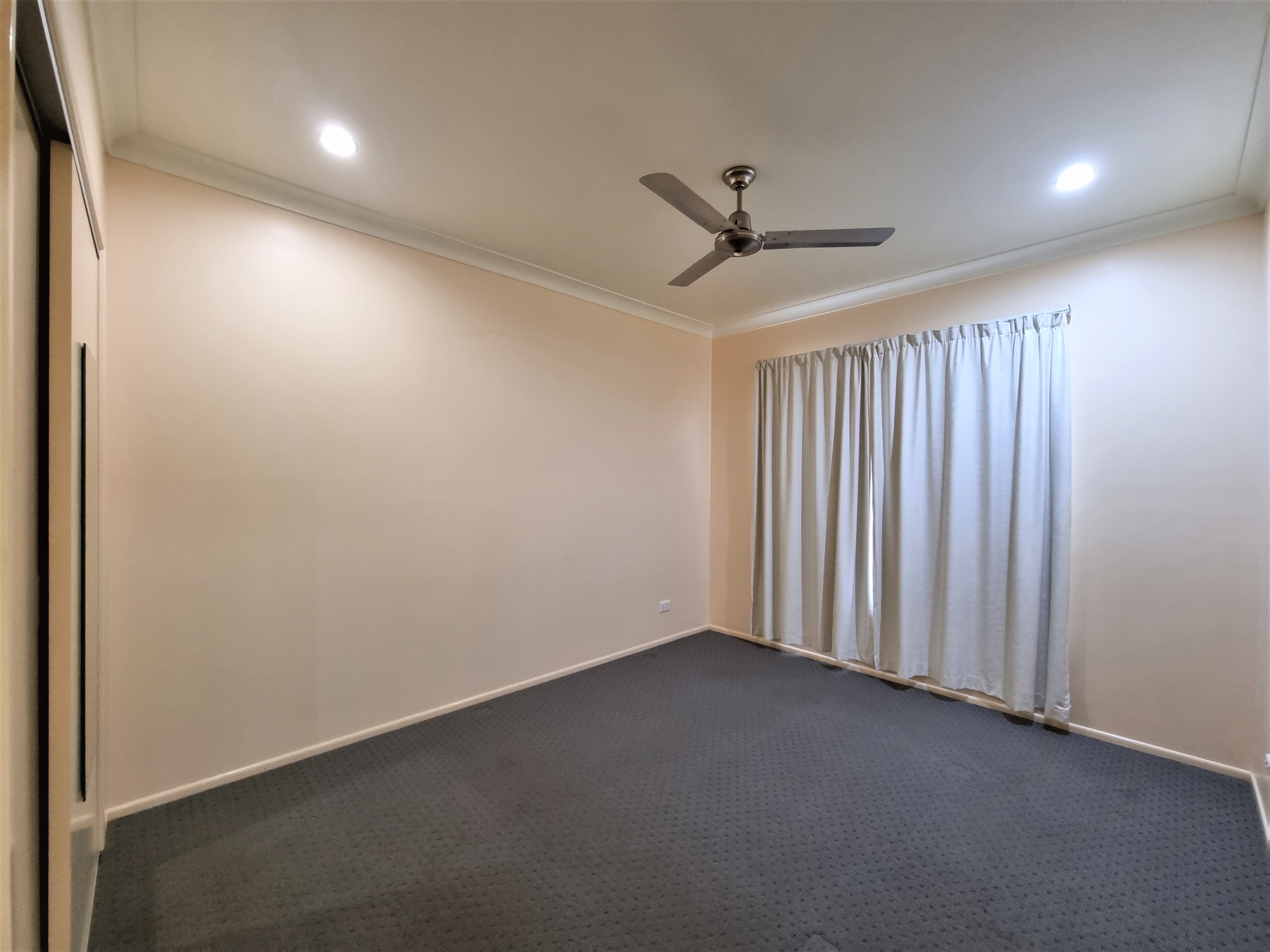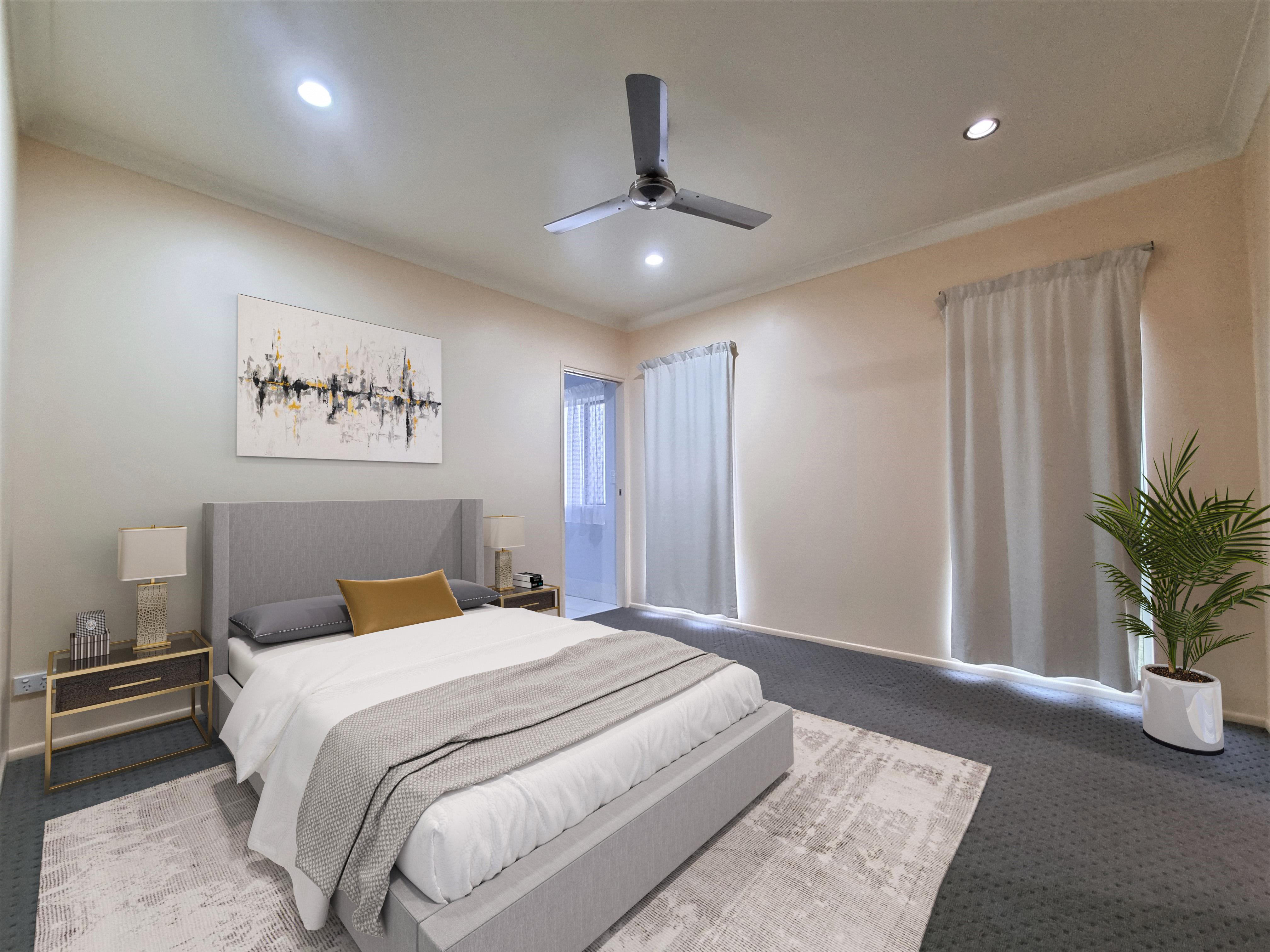 The three minor bedrooms have built in wardrobes, fans and carpet on the floor, whilst the master bedroom includes an ensuite with a shower, vanity and toilet and a large walk in robe.