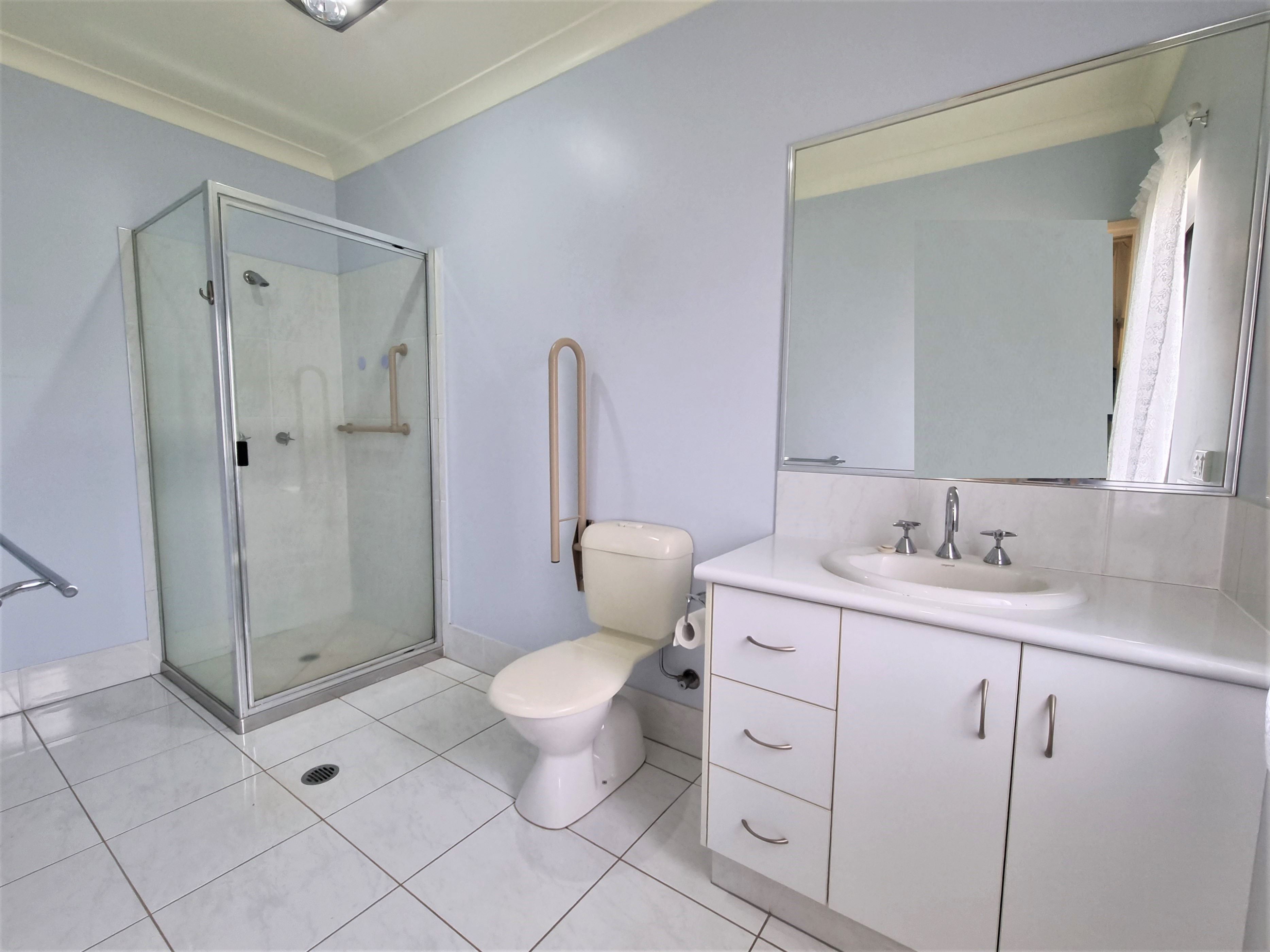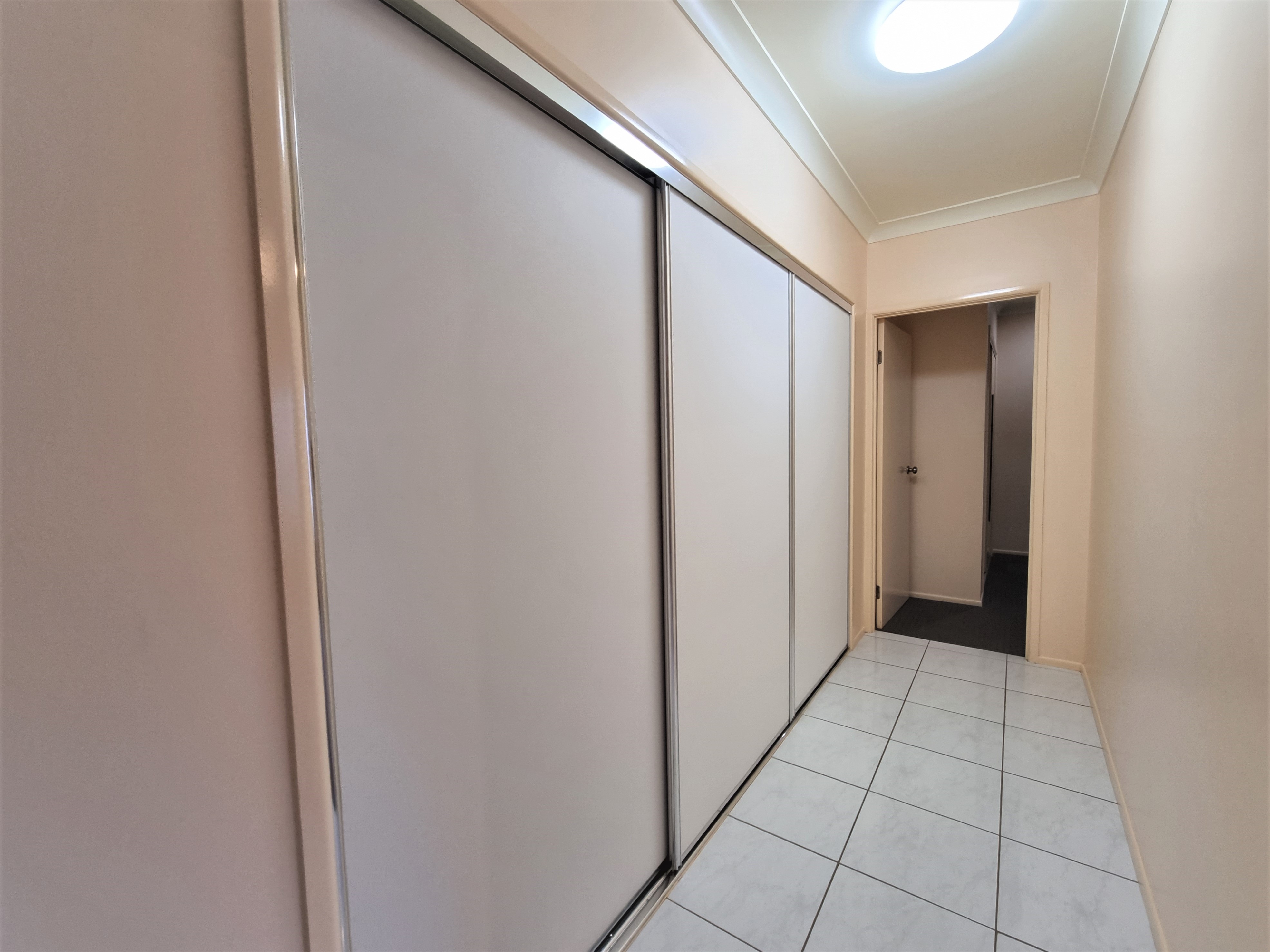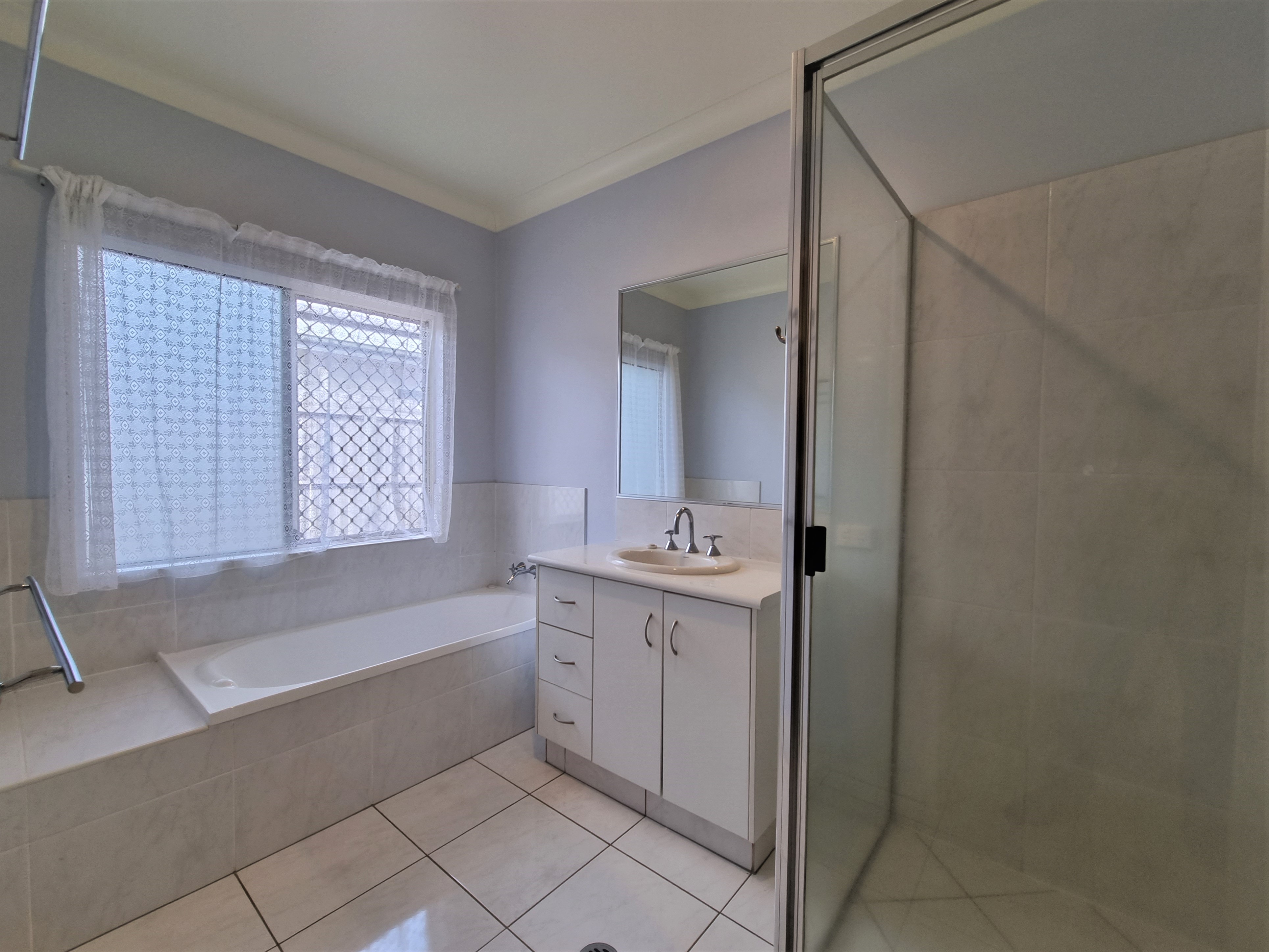 The three minor bedrooms have built in wardrobes, fans and carpet on the floor, whilst the master bedroom includes an ensuite with a shower, vanity and toilet and a large walk in robe.