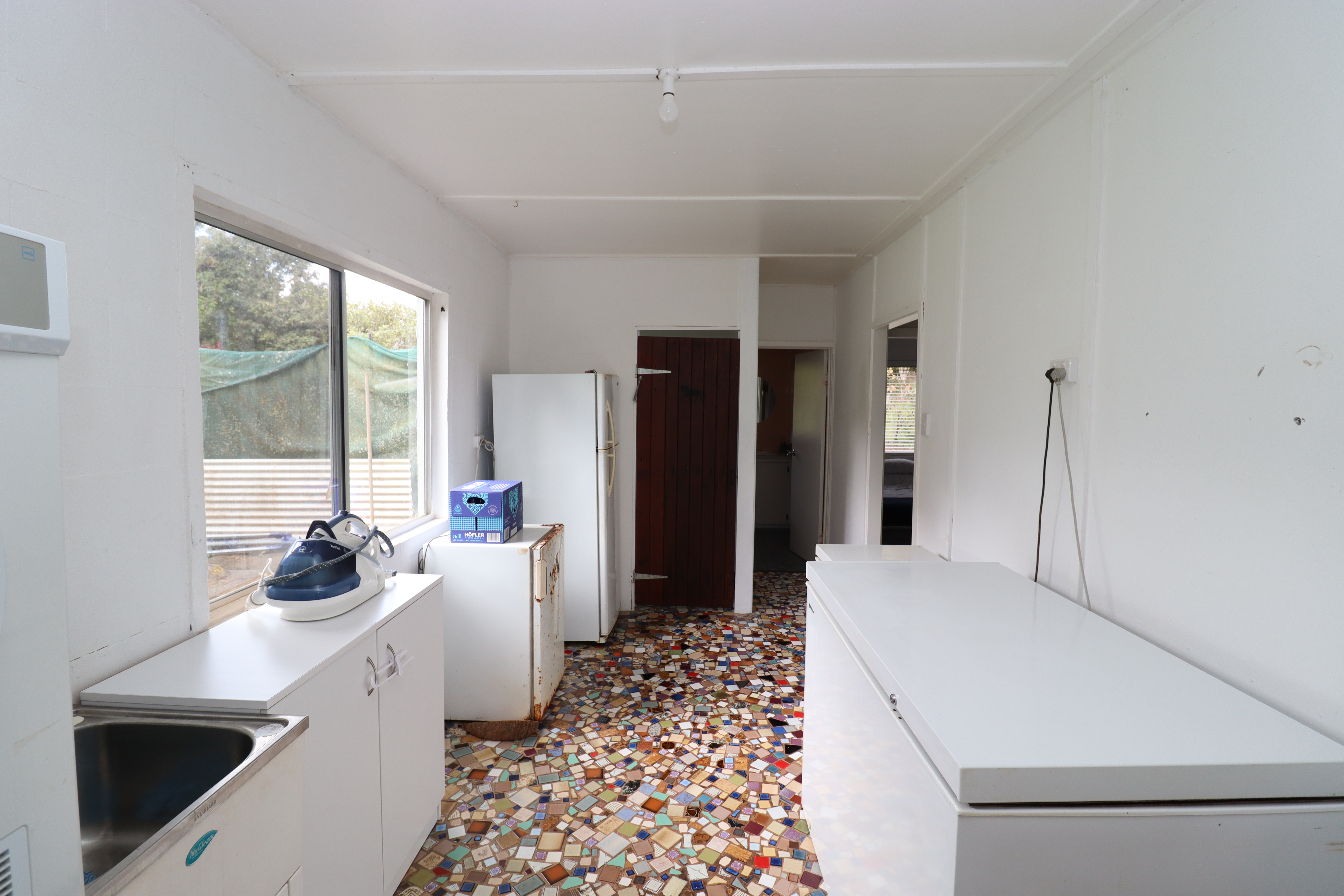 - Laundry: Mosaic tiled floor, plenty of space for additional white goods/extra storage, outside access.