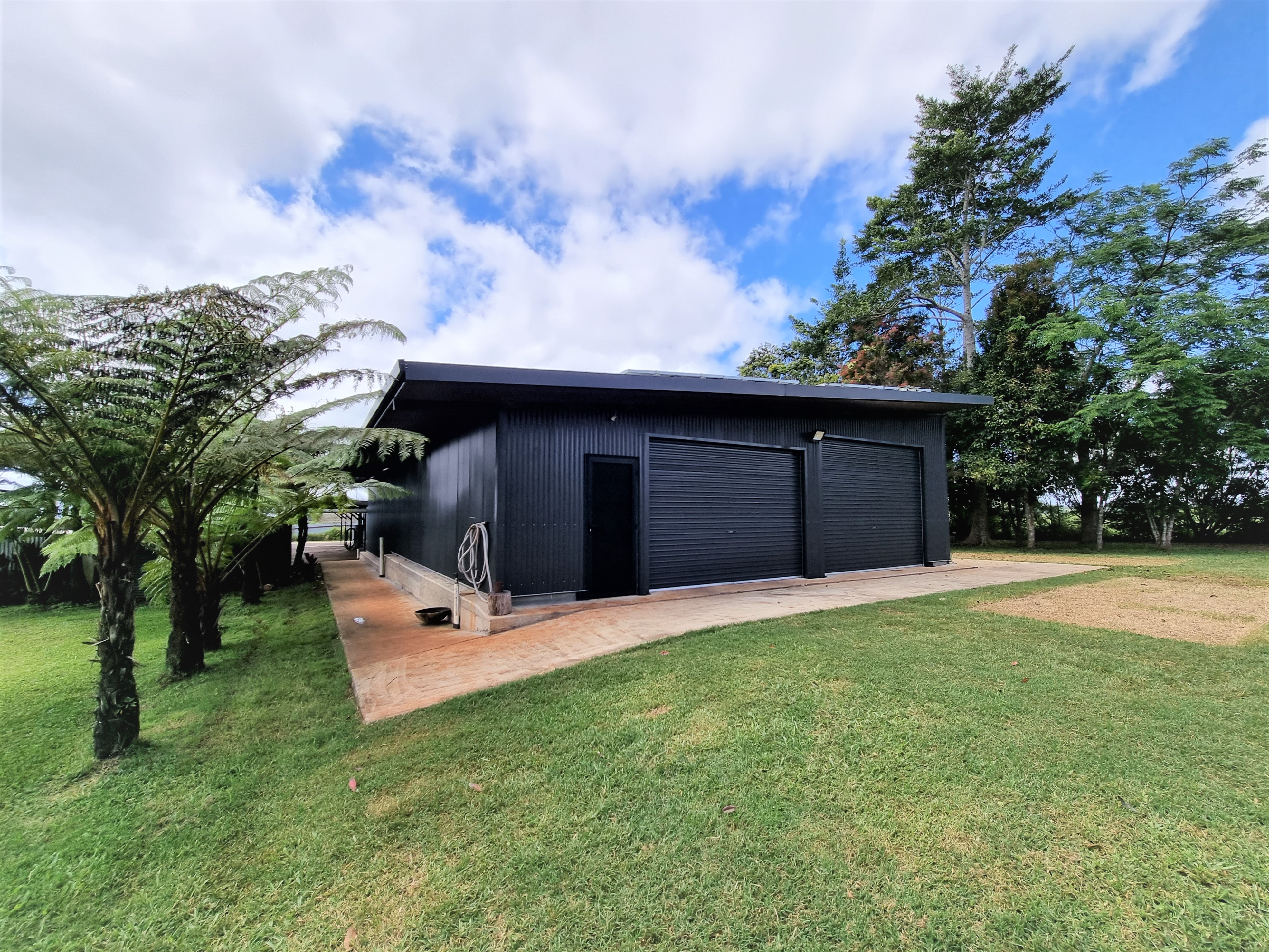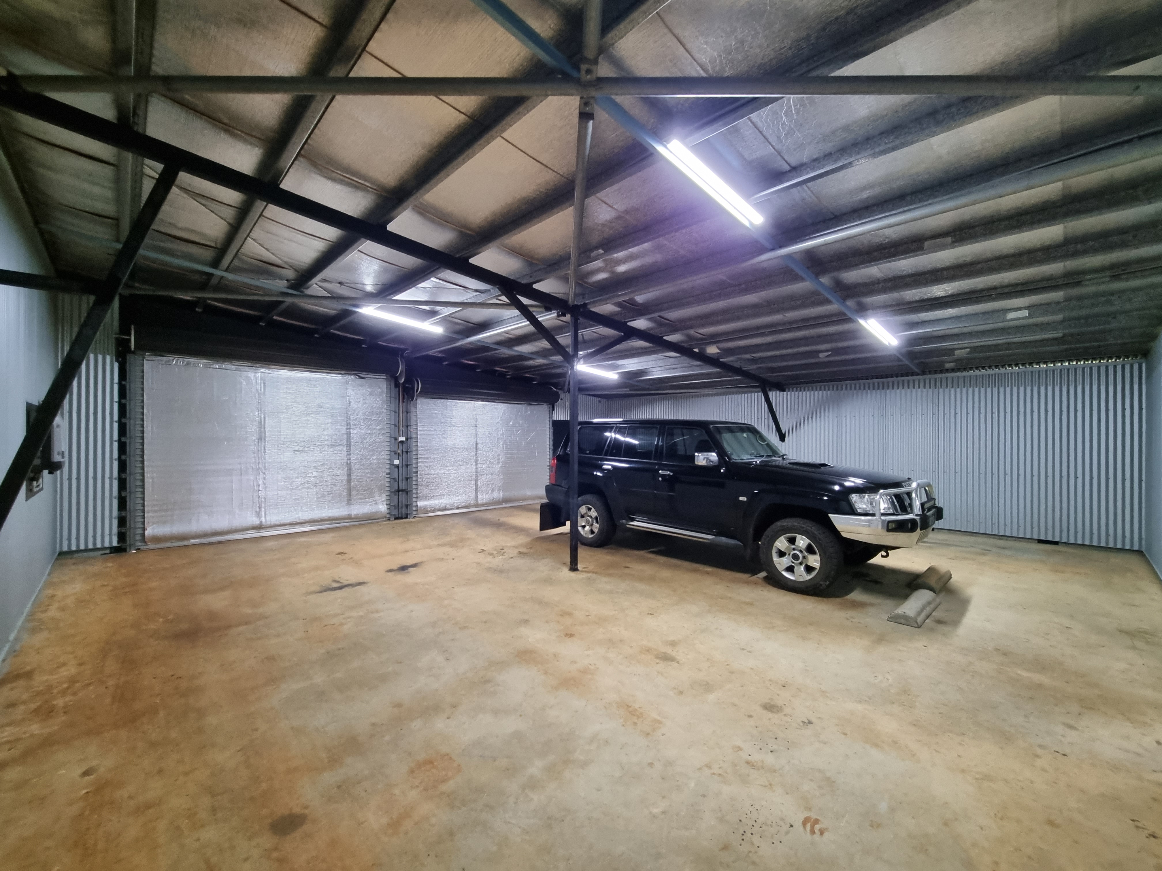 Backing onto the multi purpose room, the huge garage has dual electronic roller doors, room for a workshop, and strategic gaps left at the bottom of the walls for pipes where you could install a bathroom or kitchenette with a bit of imagination.