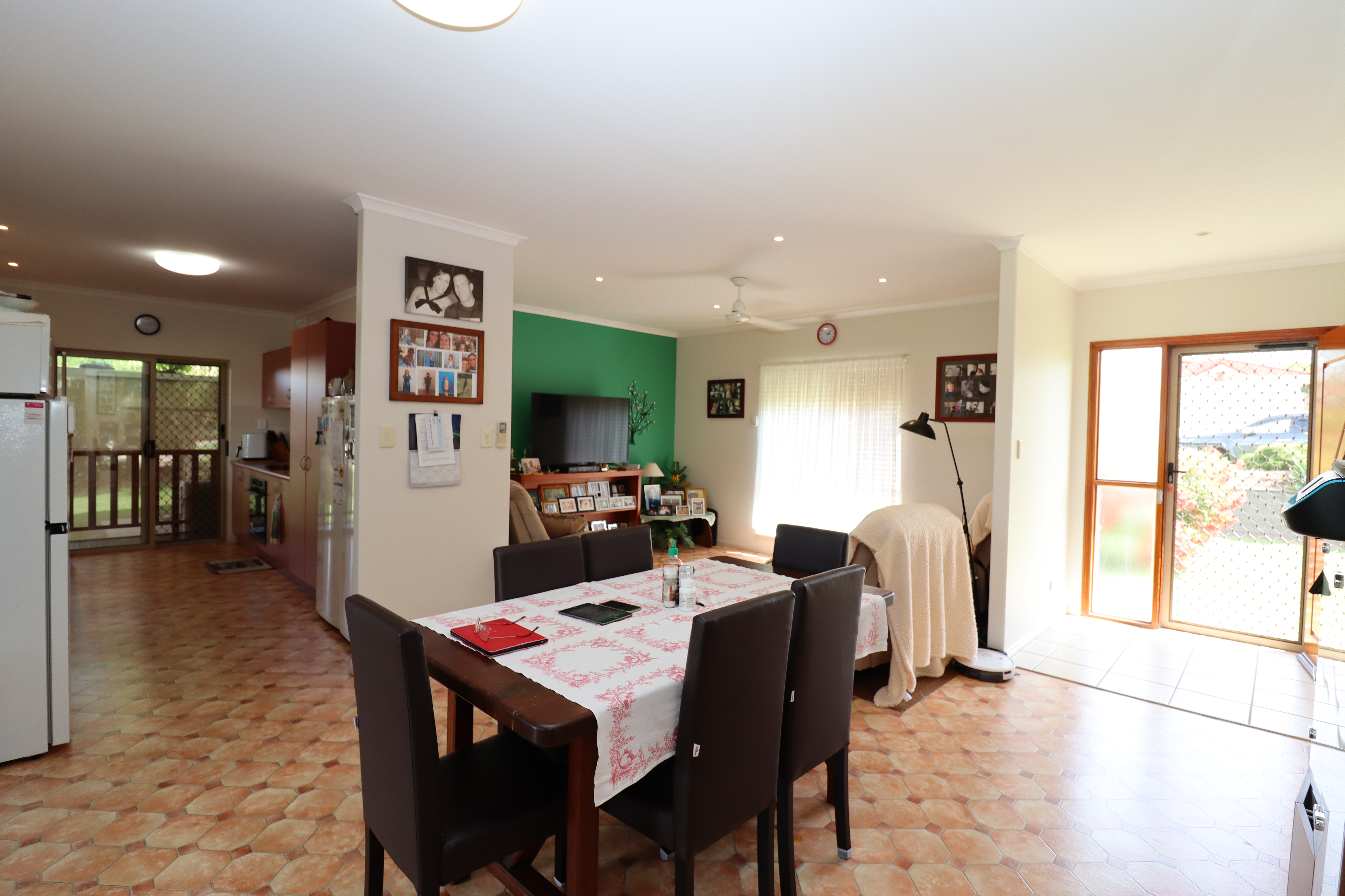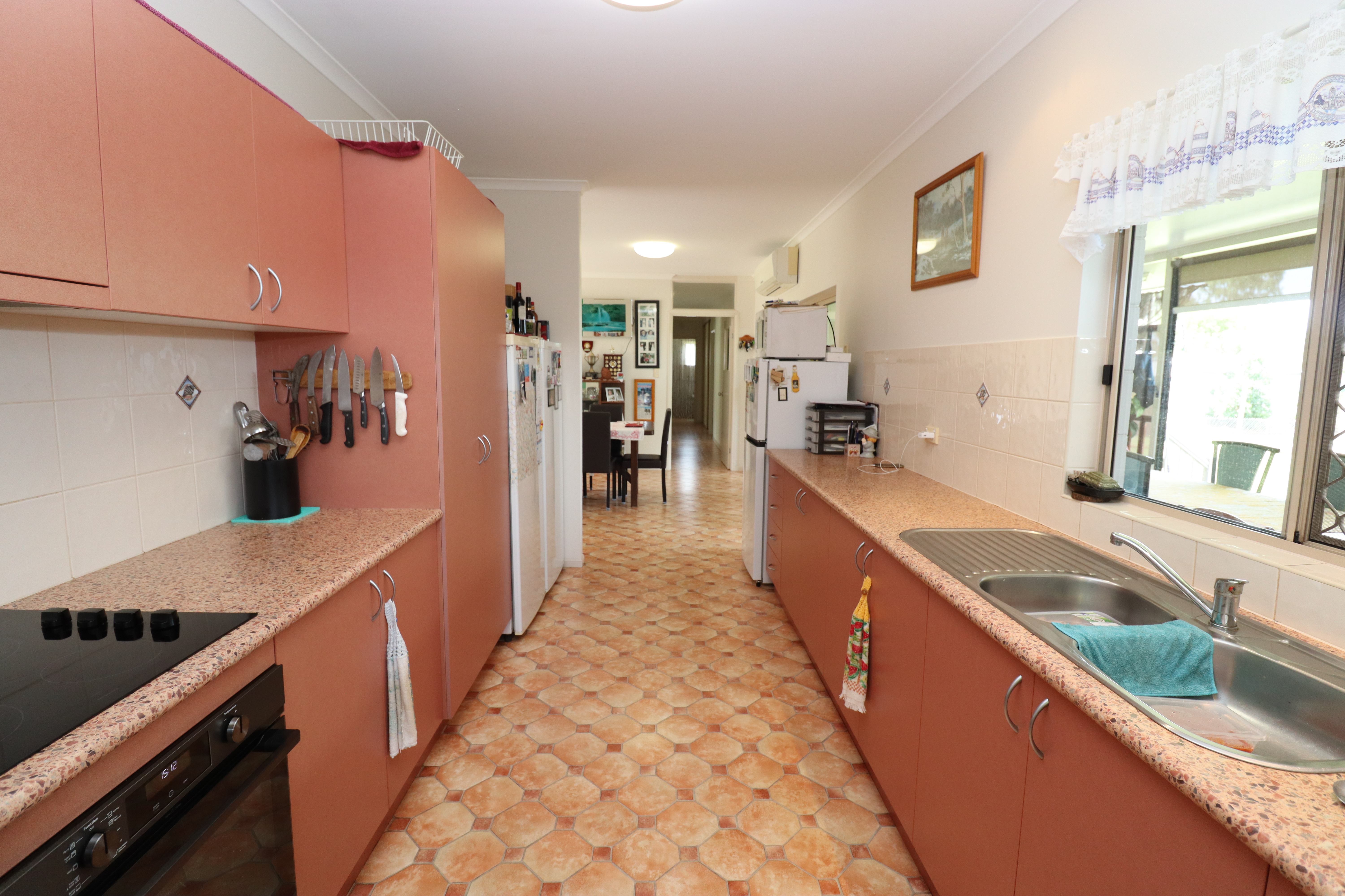 - Spacious walk through kitchen with quality appliances, double fridge recess, access to open plan living and rear deck/entertainment area.