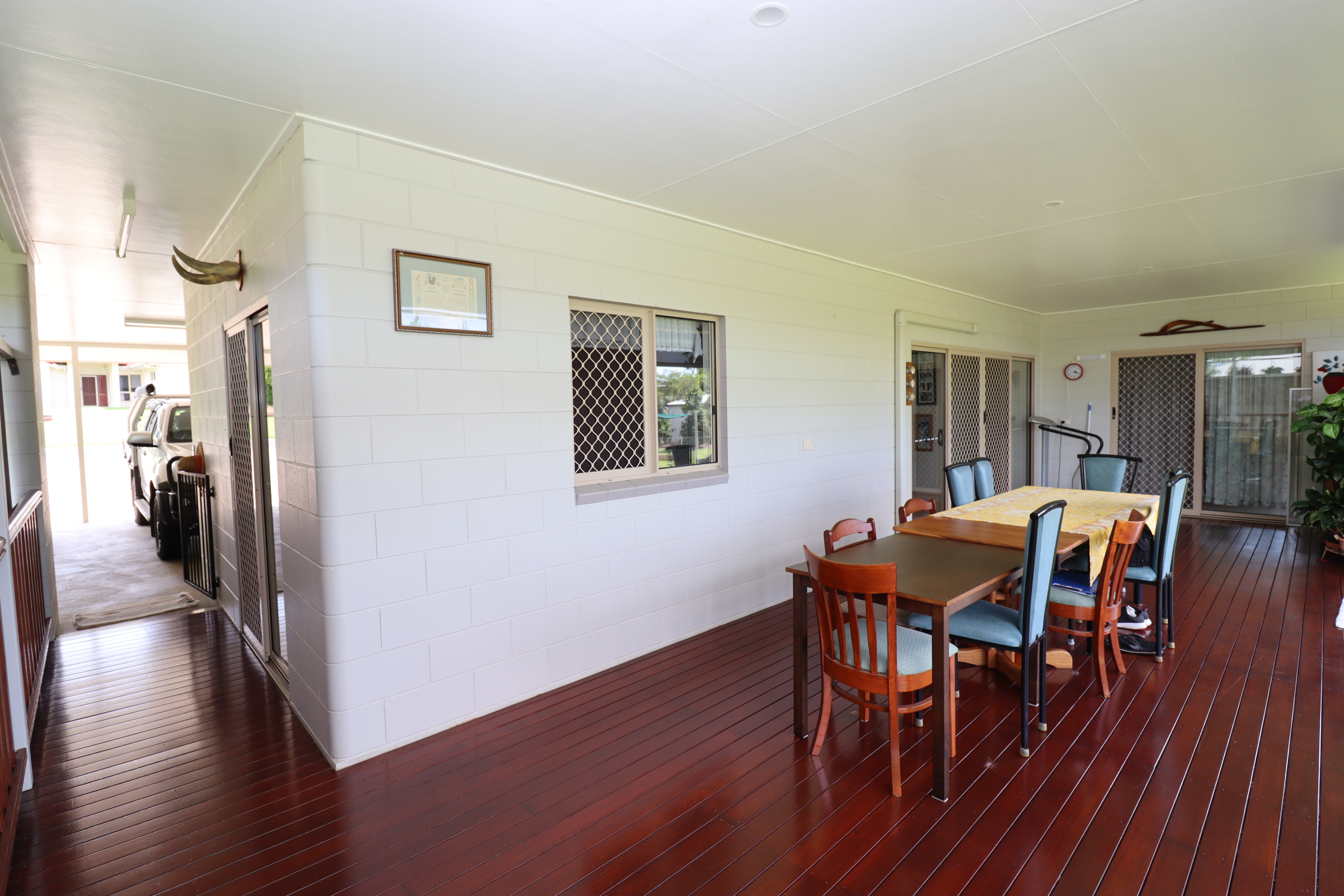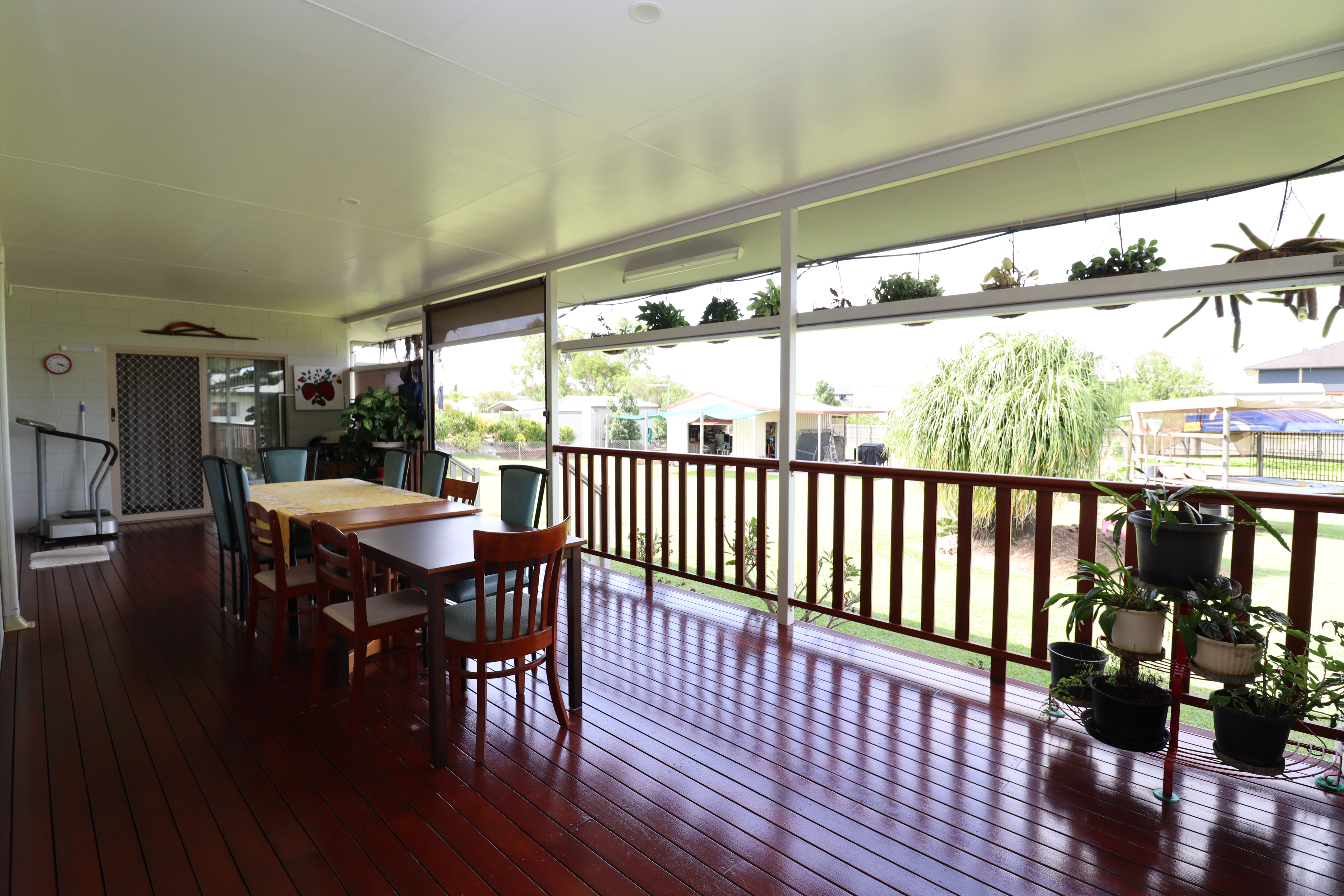 - Large timber deck entertaining area with retractable shade/privacy blinds.