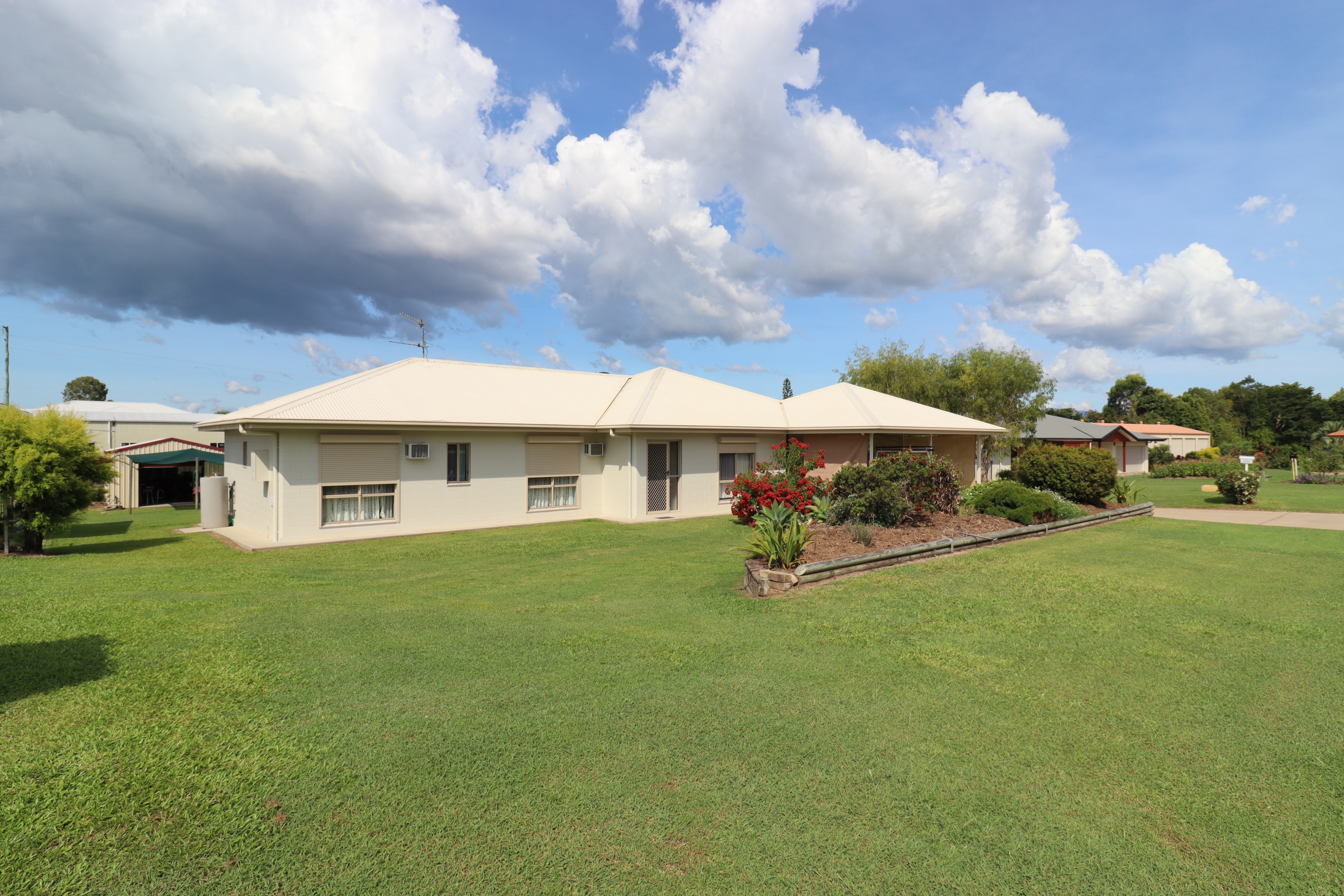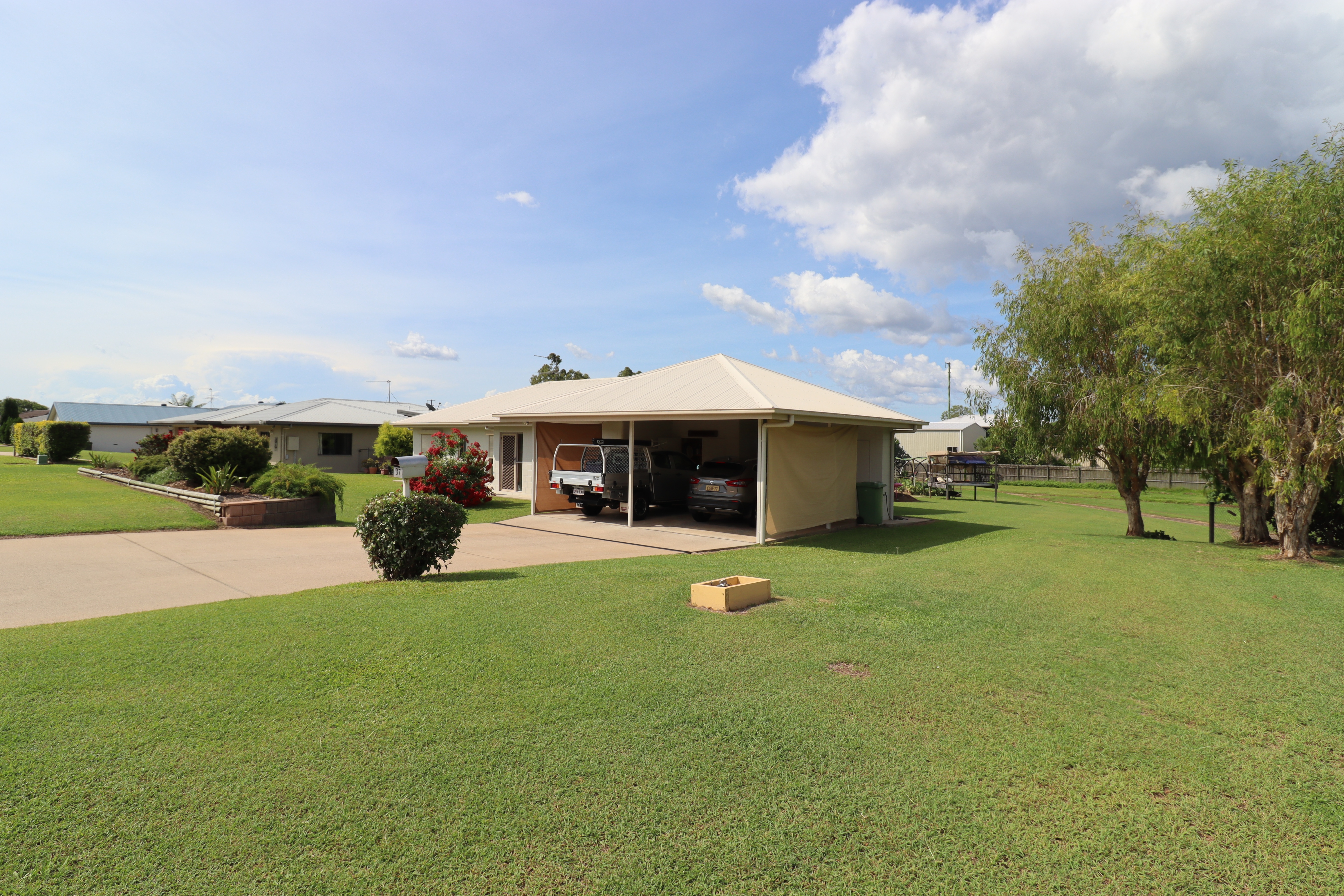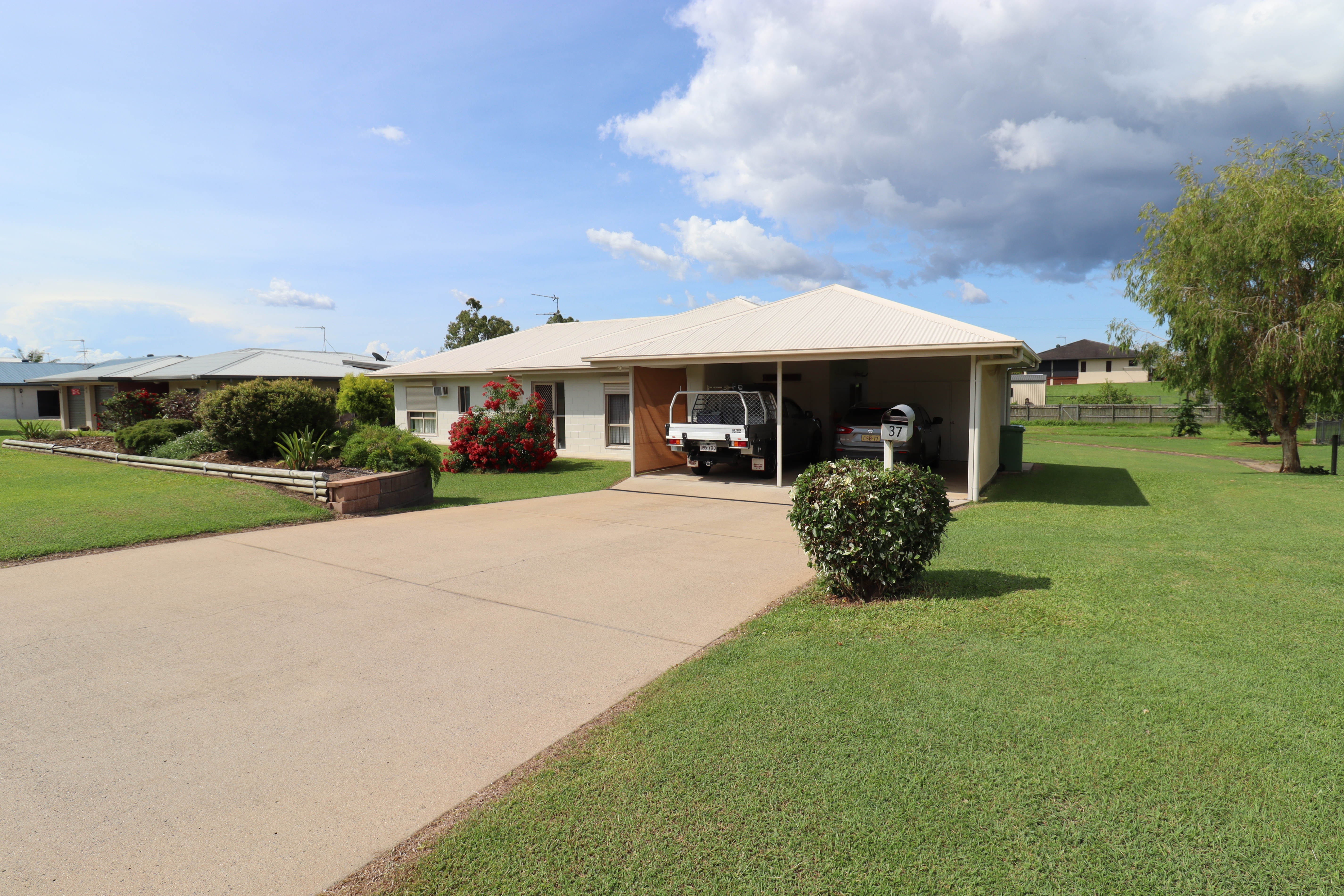 - Double carport with built in storage and laundry access.