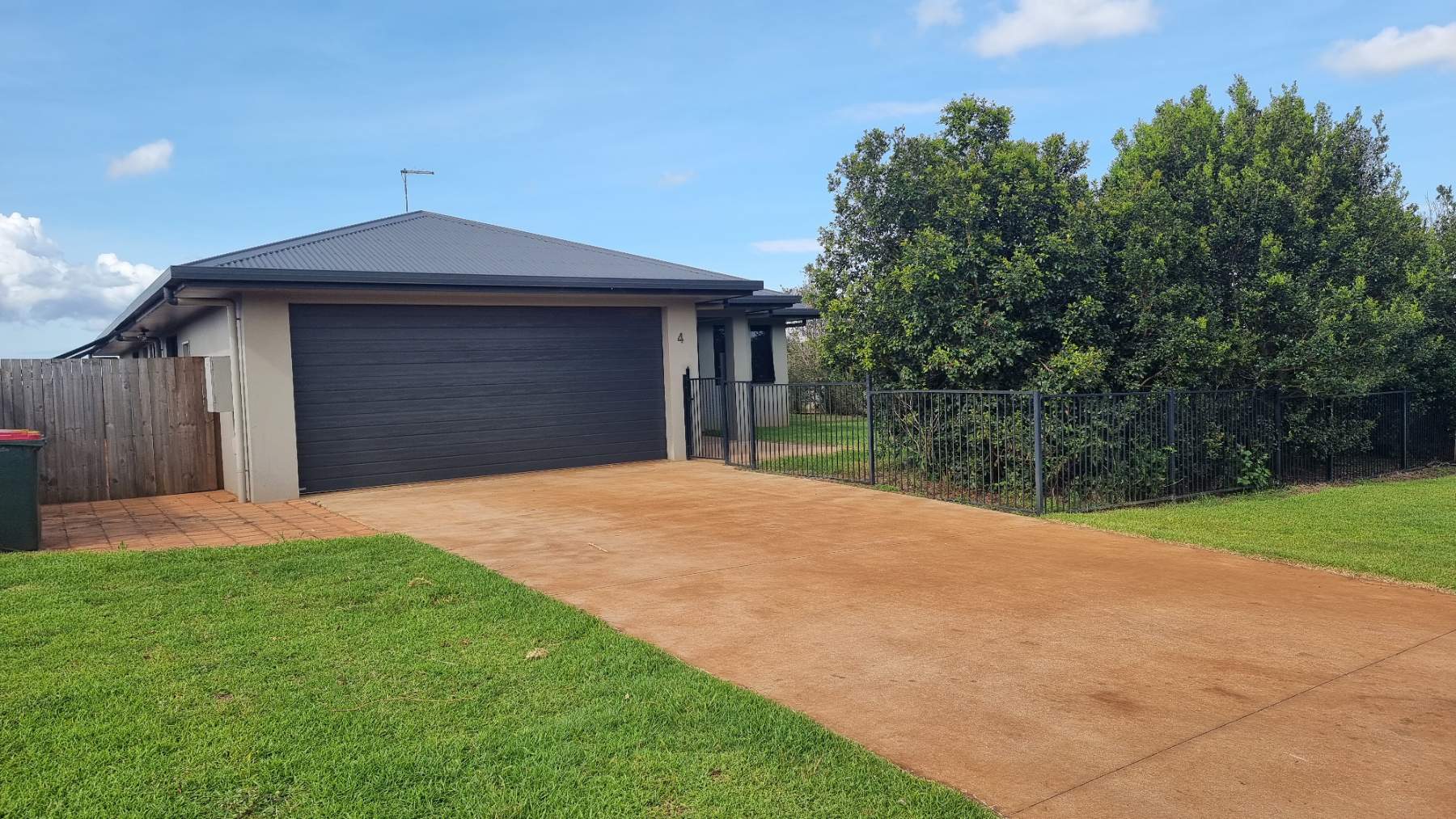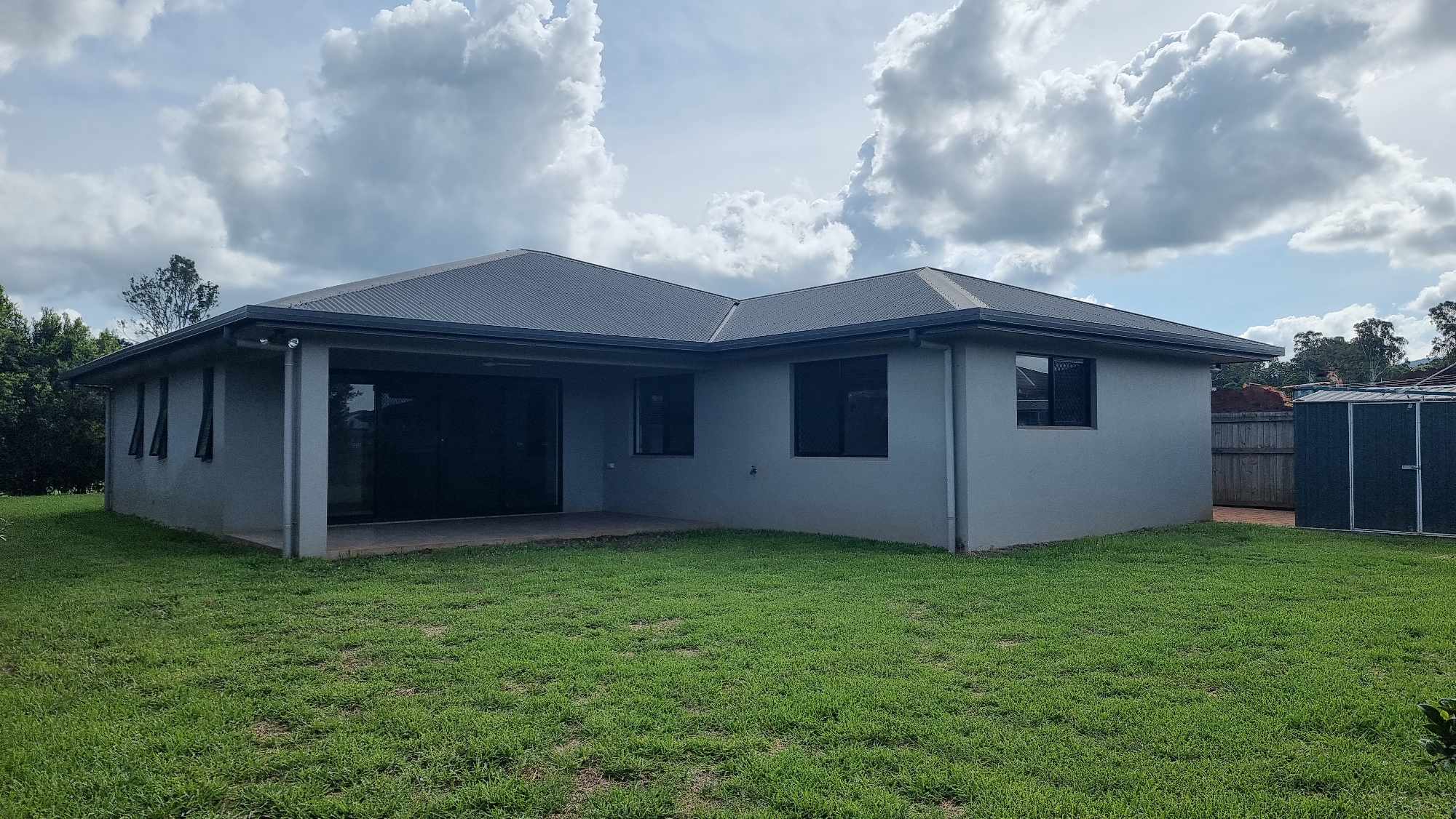 This modern and low maintenance home is closely located to the Tolga township and set in a well kept suburban area. The property consists of four good size bedrooms, with built-in robes and master having a walk in and ensuite. There are ceiling fans and security screens throughout, with a separate bathroom/toilet and laundry. An open planned kitchen, dining and lounge room that leads out onto a covered entertainment area. A small office nook and additional storage can be found between the main living and master bedroom. There is a double lock up garage with access to the main of the home, to the side of the property there is a large paved area leading to the back yard which hosts a decent and standard garden shed, fully fenced and ready to to be rented.