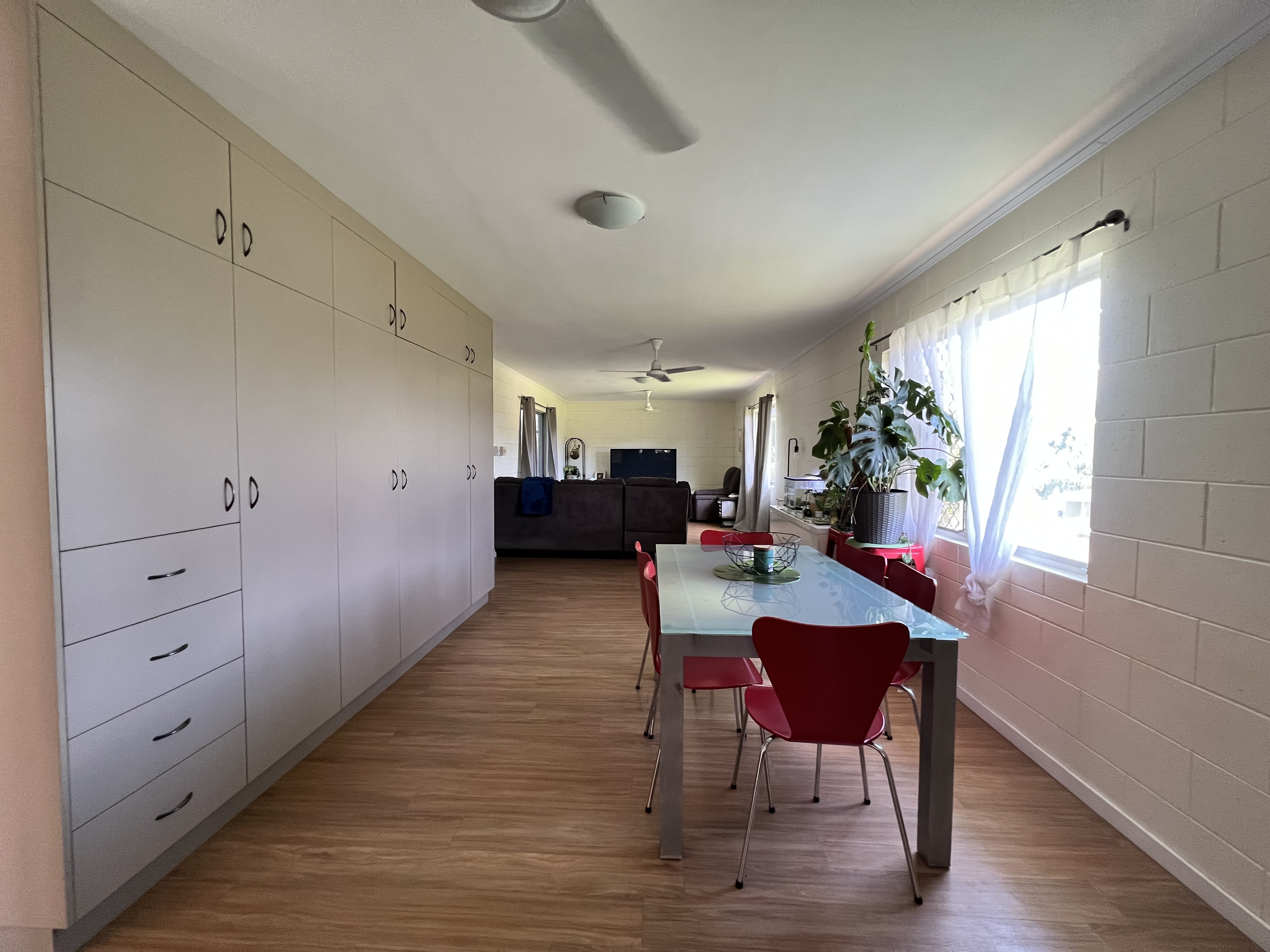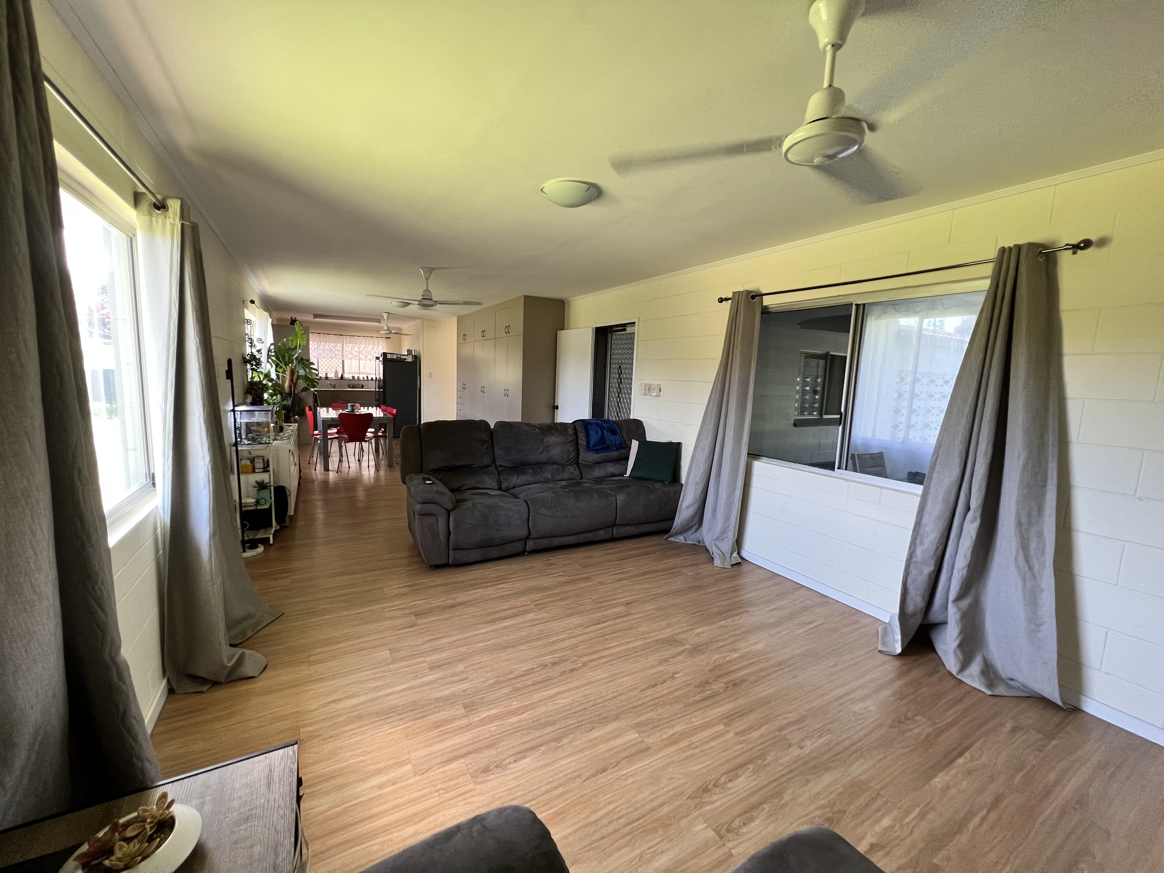 -	Open plan living with vinyl plank flooring and fans throughout.